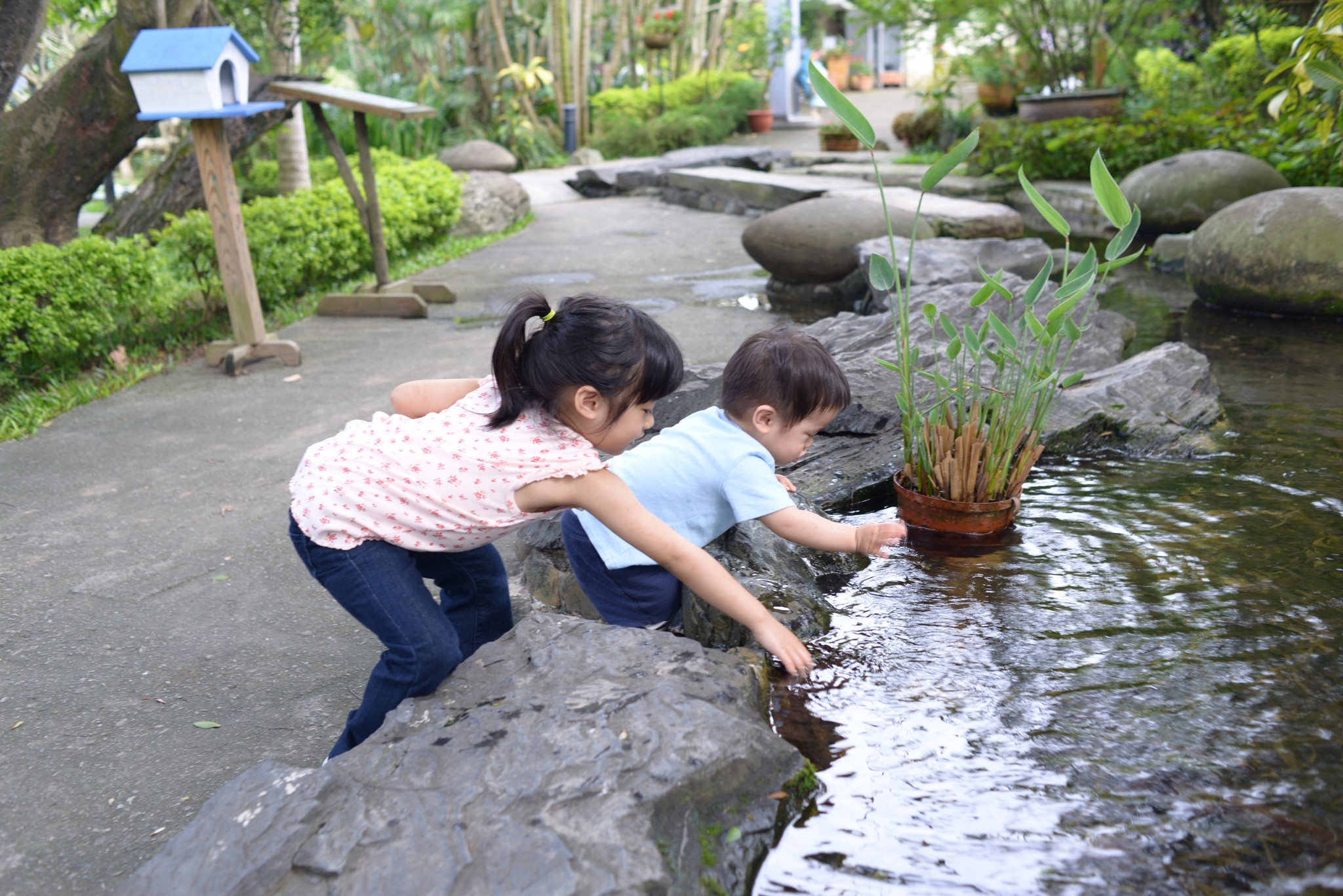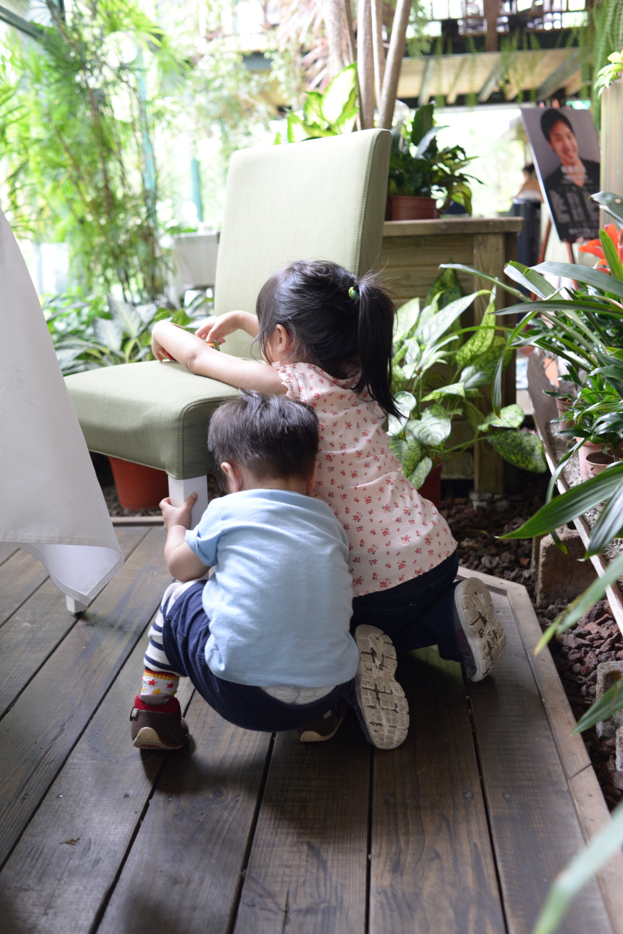 餐後就讓兩隻小人在餐廳內自在的玩耍,很喜歡這裡的綠化空間,服務人員也會和兩位小人聊天打招呼。