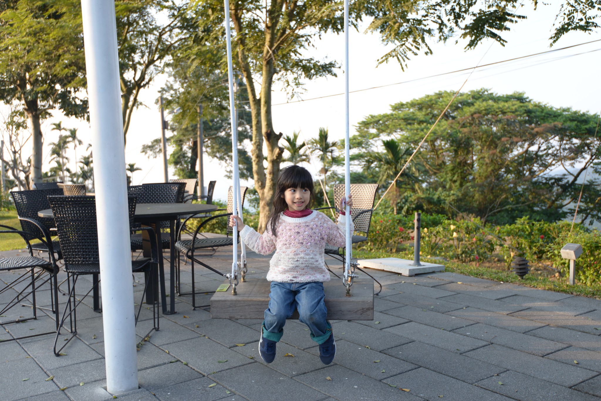 沿著步道往下走,有大人小孩都愛的鞦韆,小孩玩得瘋狂,大人裝裝文青!(有限重,除非像我一樣瘦,否則請勿嘗試!)