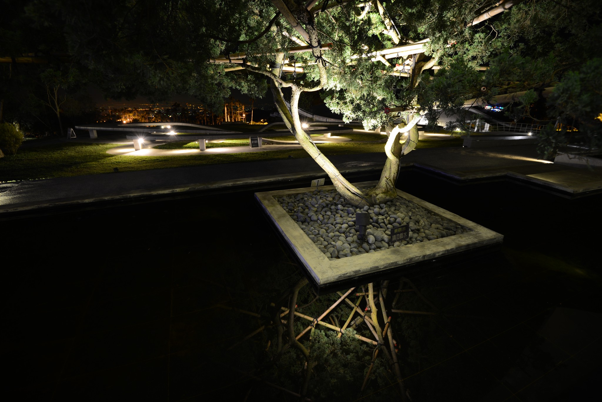 晚間拉著腳架原先想要拍夜景,結果夜景沒拍到,倒是拍到平靜水面上漂亮的倒影。