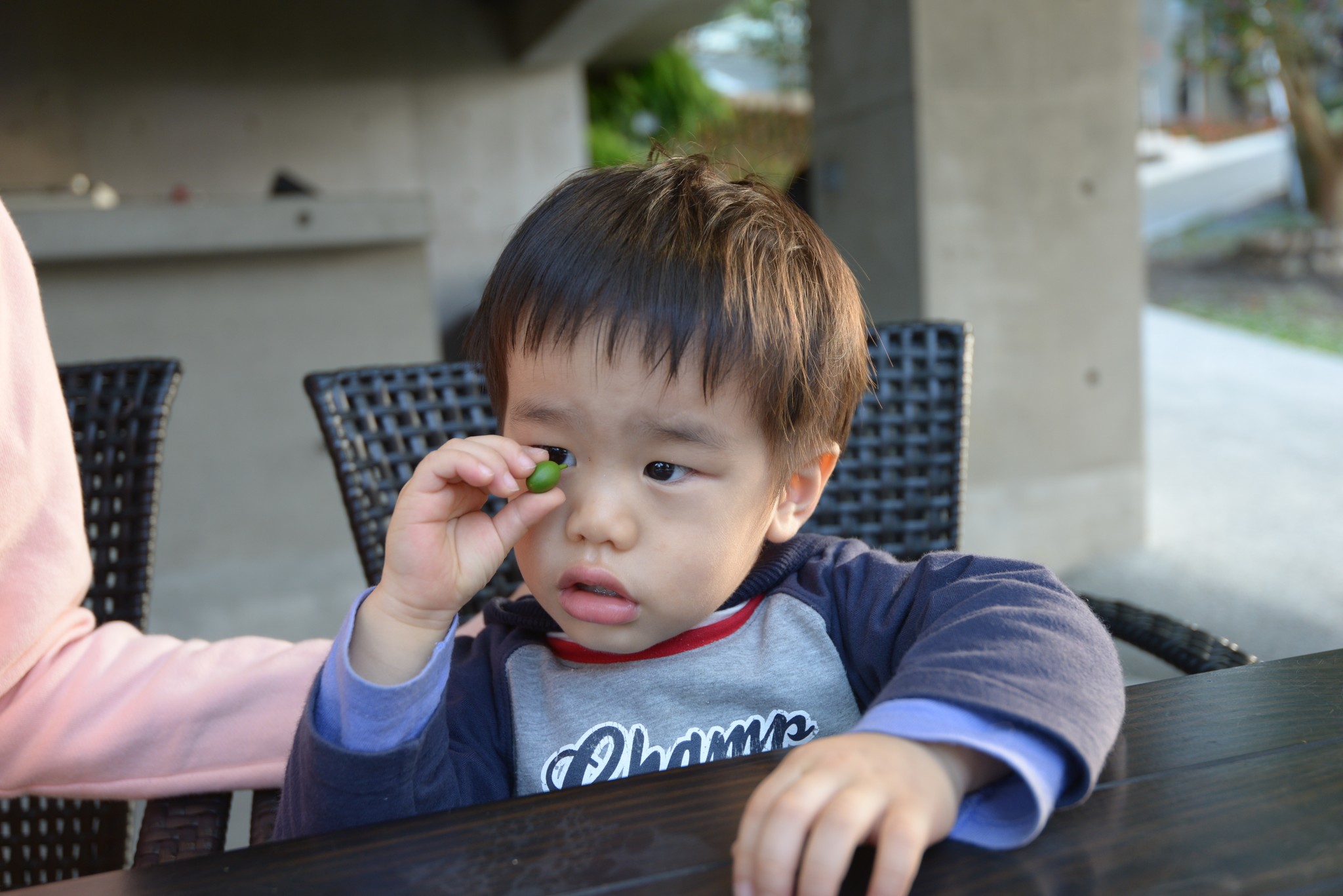 陳小弟很認真地看著咖啡果實,啊是有看出什麼名堂嗎?