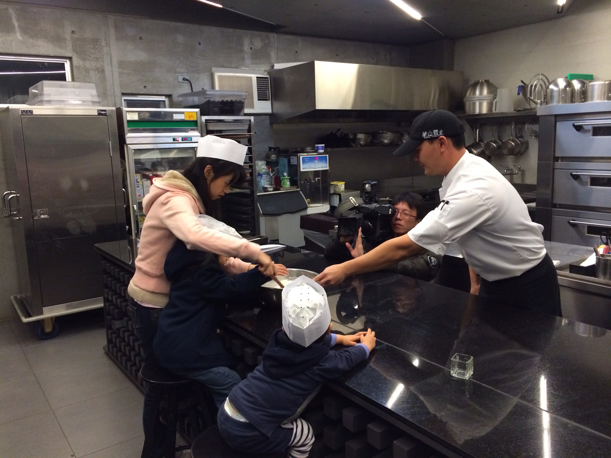一泊四食的晚餐是鍋物,內容還蠻平實的,吃到一半服務生跑來詢問是否要配合參加晚間的親子烘焙 DIY 攝影。原先還欲情故縱害怕上電視,但貓大王抵擋不了烘焙的魅力,再加上想說讓兩位小毛頭上上電視留作紀念,所以就答應啦(表情要裝作勉為其難)。
