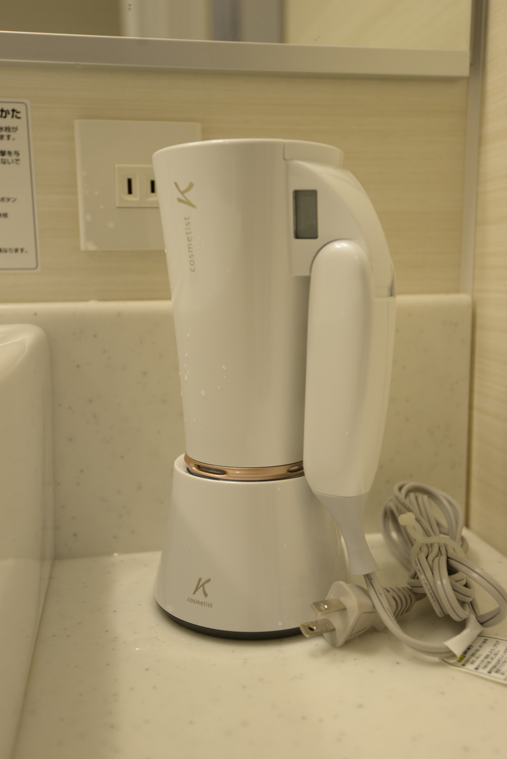 吹風機不是釘在牆上的!這點對於帶小朋友出門的人真的很棒!小 baby 洗完澡後可以直接抱到床上吹頭髮,房間床頭不吝嗇地給兩個插頭,直接插床頭即可。