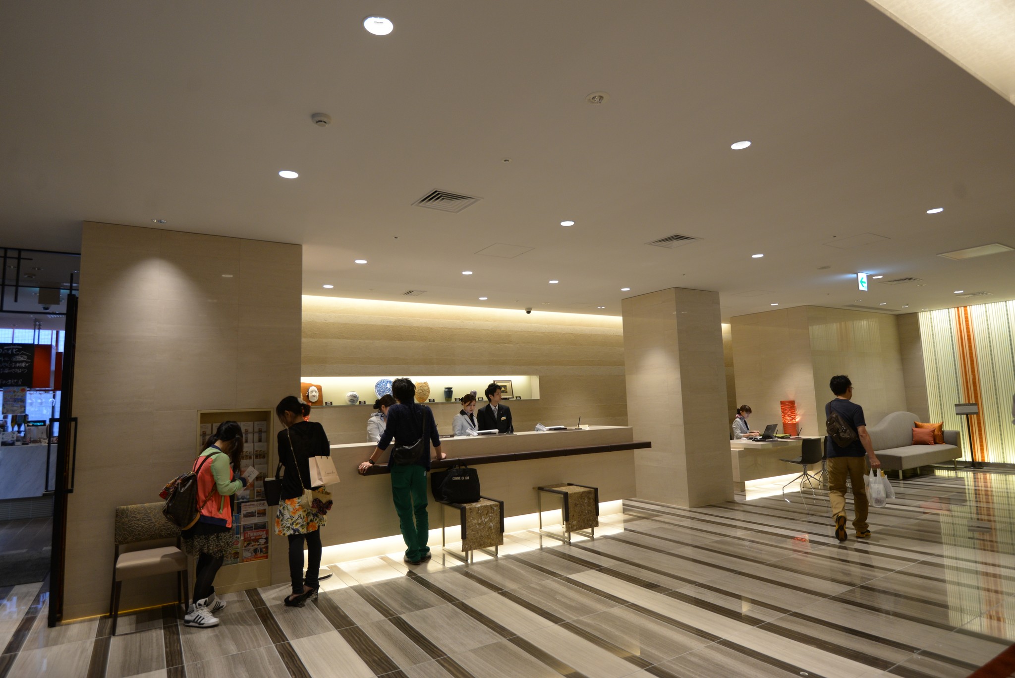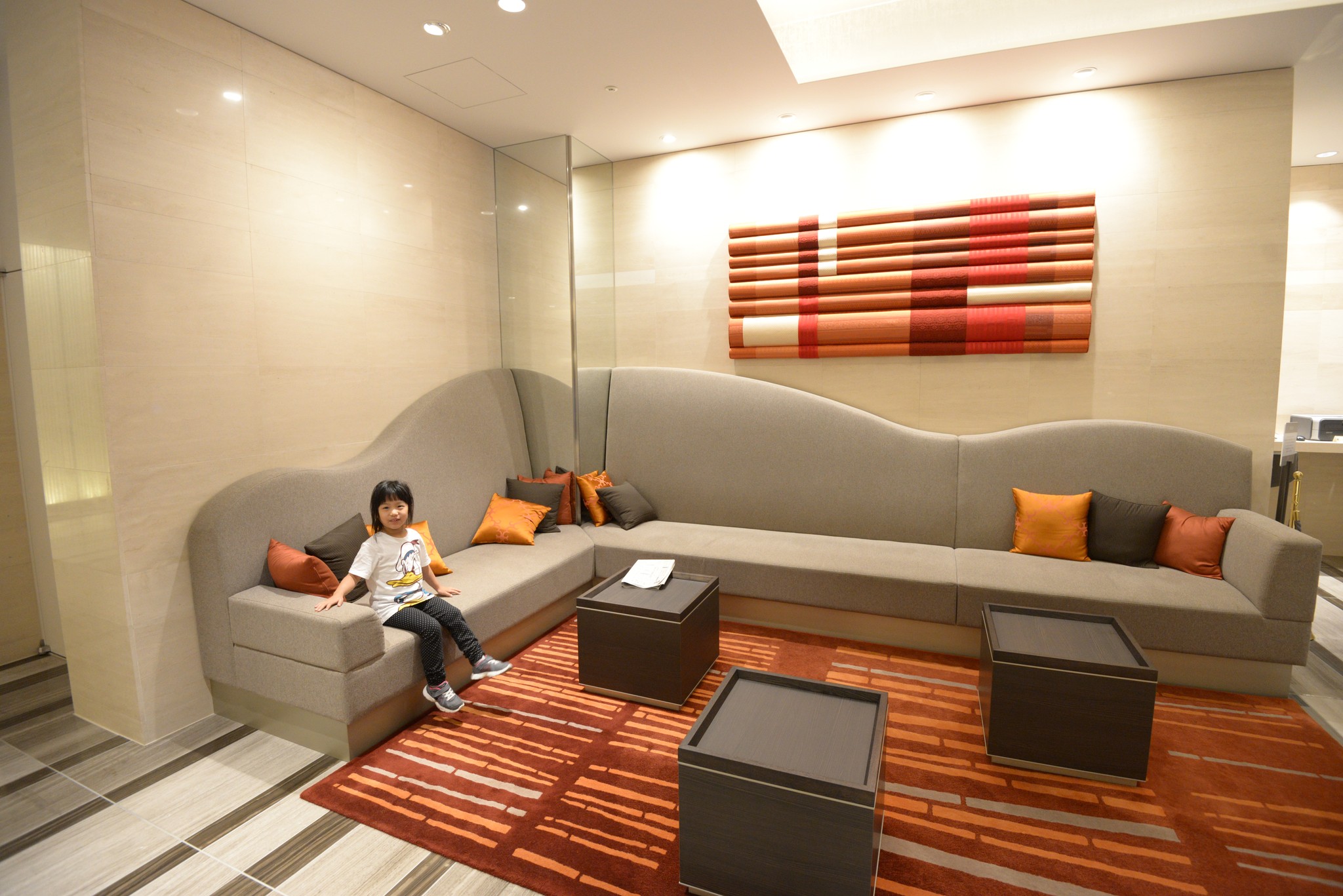 一旁的休息區有設計旅館的感覺,完全不曉得這是一間商務旅館。後方有吸煙室,我們完全不想進去拍照。