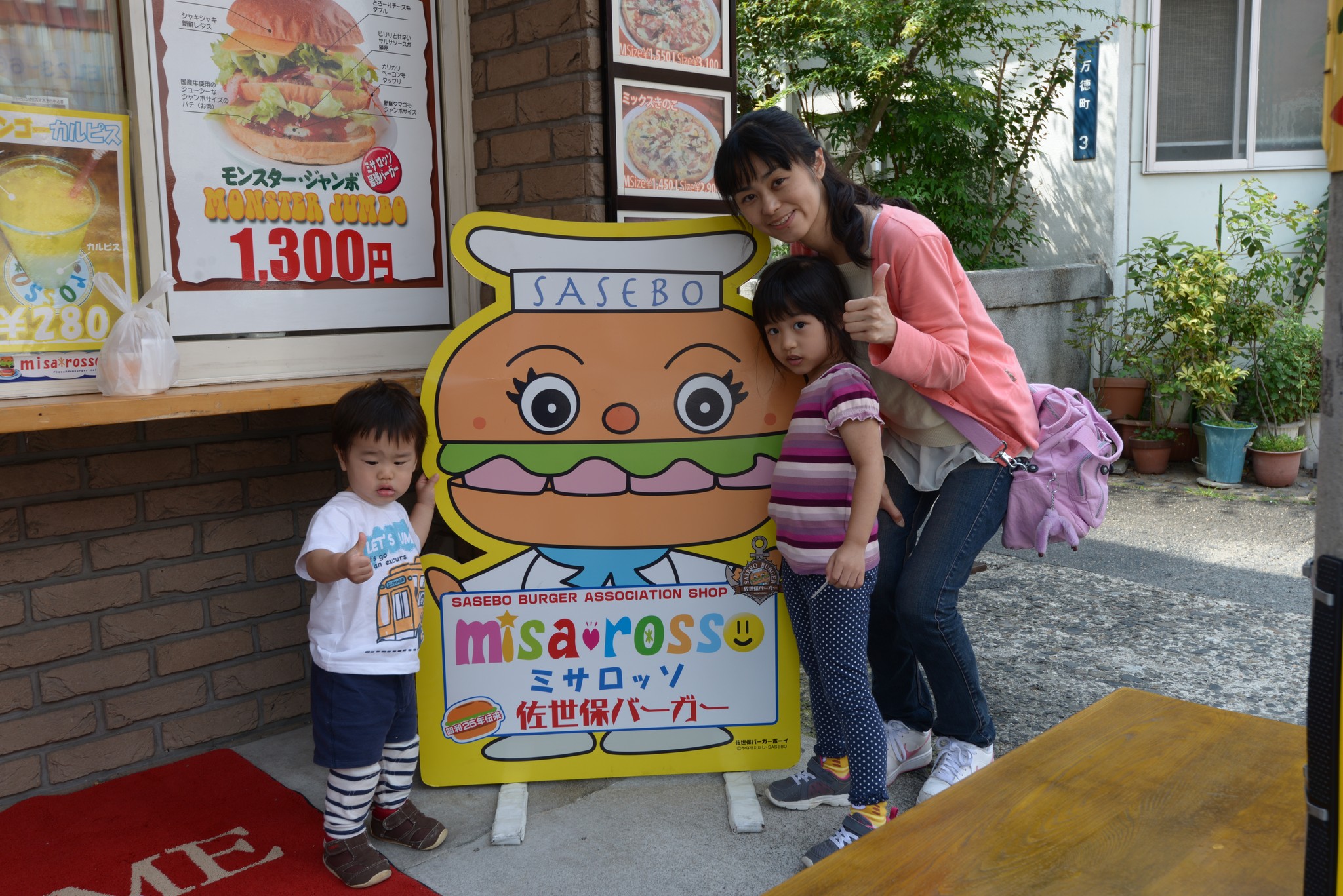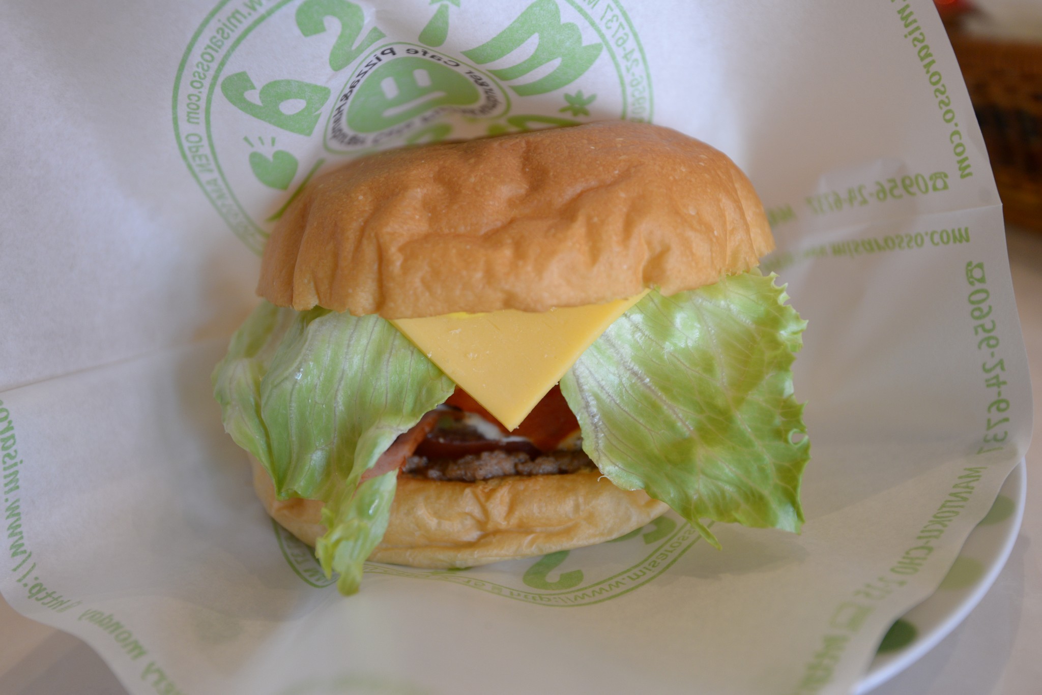 基本上要到佐世保的交通,從博多有 JR 火車可以到達,但到了佐世保後,往展望台或是一些景點只能靠班次稀少 bus,最美麗的展海峰展望台更是需要包計程車才到得了,所以二話不說,租車遊玩佐賀長崎一天搞定。也因為租了車,當然要來嚐嚐這個交通不便、號稱全日本最強的漢堡。ミサ ロッソ位在北佐世保的一條小巷弄內,官網說他有四台車的停車位,但實際上停車場停了店家自己的一台車以及堆一些雜物,最多只能再停兩台。到達時店門時已停了好幾台車,我們在附近繞了好幾圈似乎也找不到合適的停車位,索性就在店門前跟其他車子排起隊來。下午時段能有這麼多人來捧場,還有車子排外帶,用餐時刻不就爆滿?