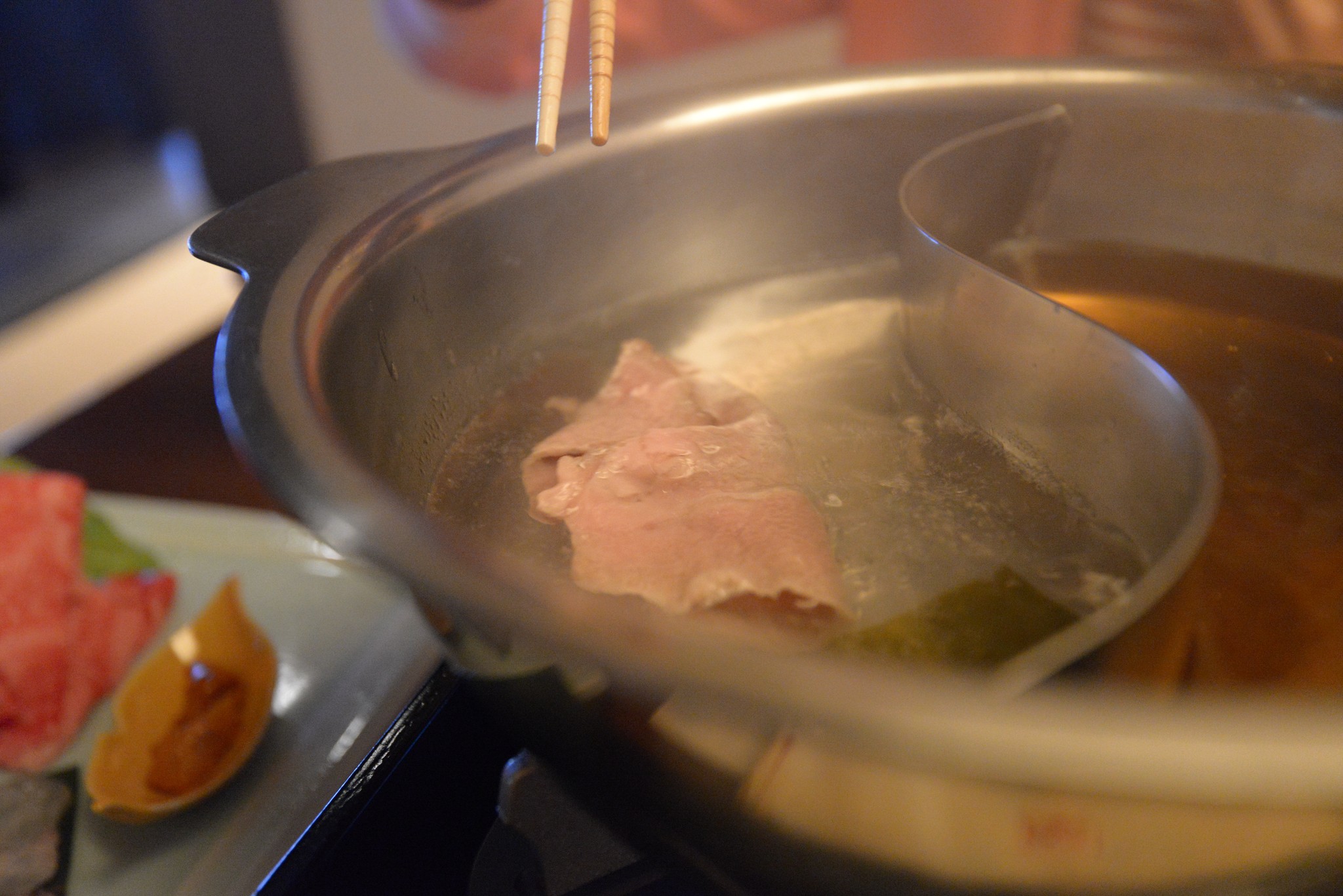 這麼好的肉捨不得涮太久,除了給小朋友吃的之外,涮成這樣的粉紅色澤是最好吃的熟度。
