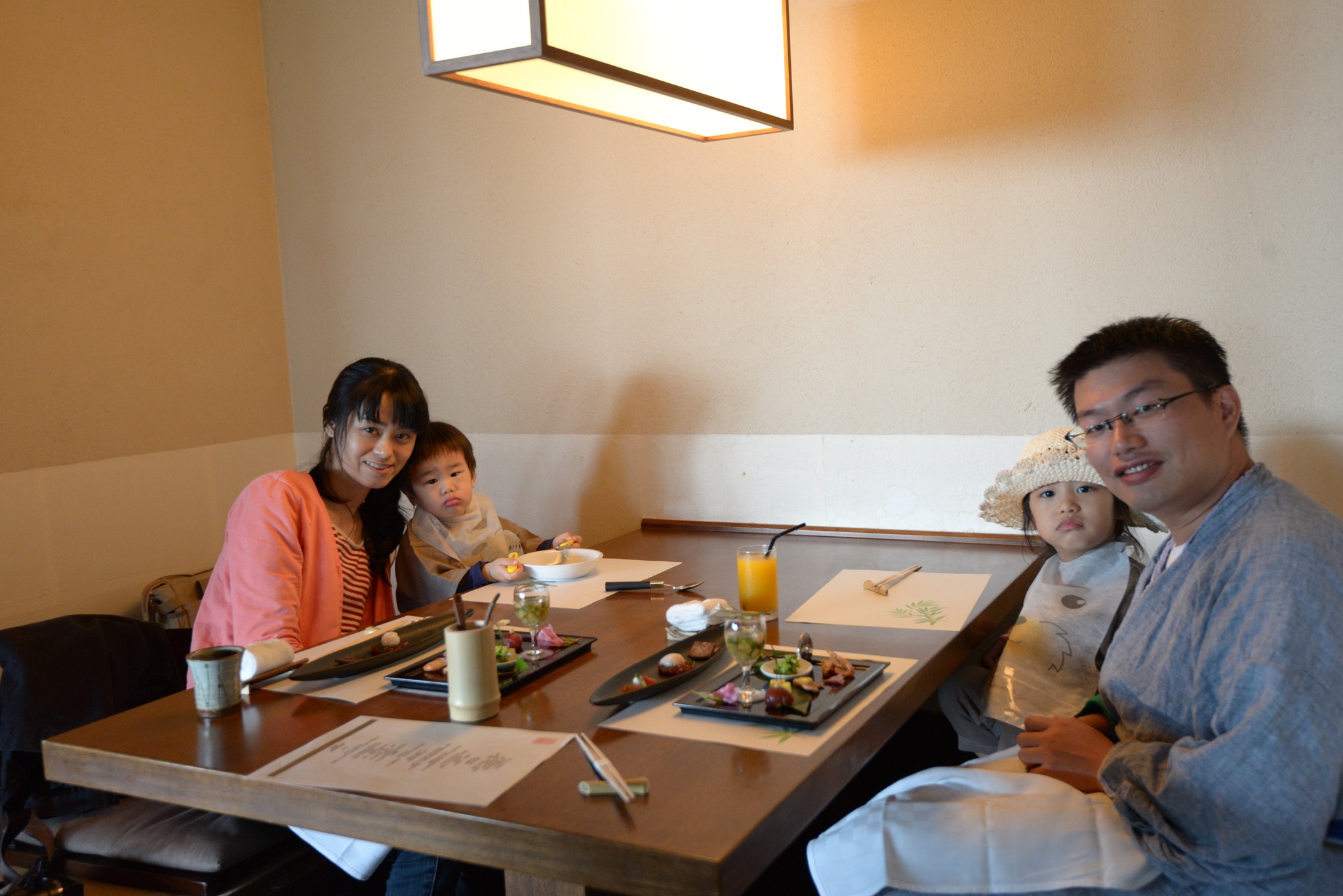 訂房的時候選定不同的 package 搭不同的晚餐菜色,像是夏季的特別会席有豐後牛和鮑魚,不過這價差挺驚人的,一人的價差約莫在 12,000 隻羊,也就是說一間兩人房價差就 24,000,所以我們還是乖乖的選「季節の基本会席」。