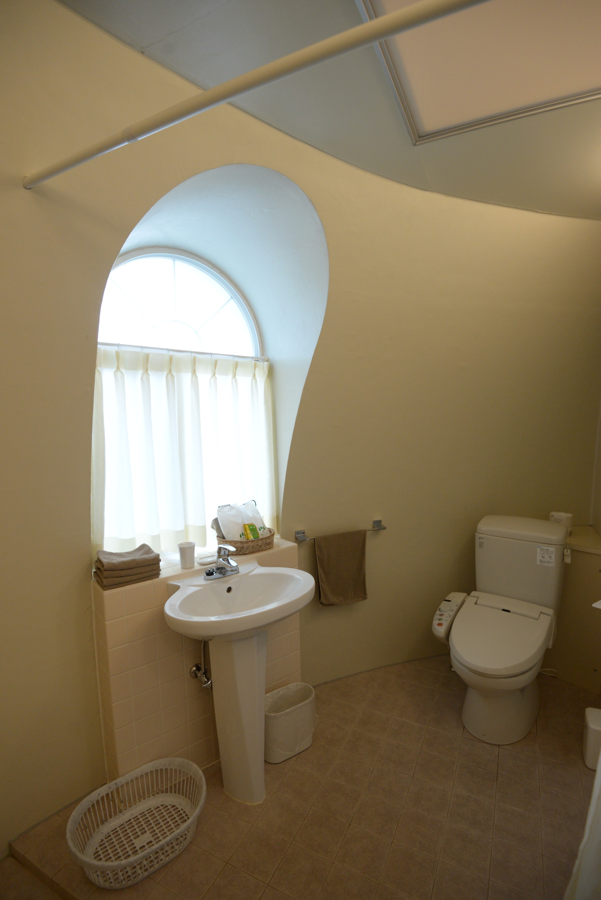 浴廁門進去左右兩半,一半是馬桶和洗面台,有普通版本的洗屁屁機。