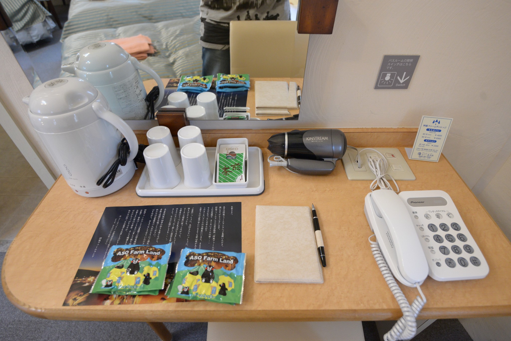 這次的預約是兩位大人一位幼兒,陳小弟不算錢,package 的內容有早晚餐,火山溫泉卷和一張體驗卷,因為陳小弟還小,不太適合去泡大眾湯,再加上行程上的安排,體驗也沒有去玩,對我們來說只是純一泊二食。這裡的 check-in 時間只有 16:00 ~ 18:00,而 10:00 就要 check-out,所以純素泊來說有些不划算,最好是留半天時間來玩園區內的設施。