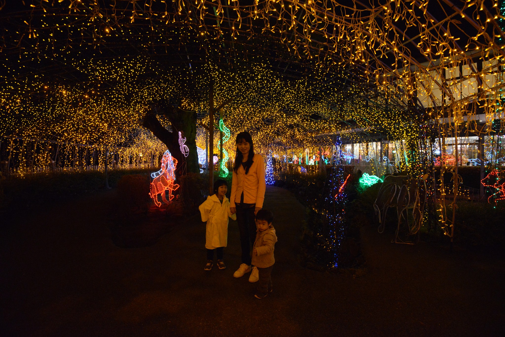 晚間跑出去拍ヴィレッジゾーン的夜景,一直找不到官網拍夜景的角度,隔天看地圖才知道我跑錯地方拍了。這裡可以看出ヴィレッジゾーン這一區蒙古包排得好密,不曉得會不會聽到隔壁老王的聲音。