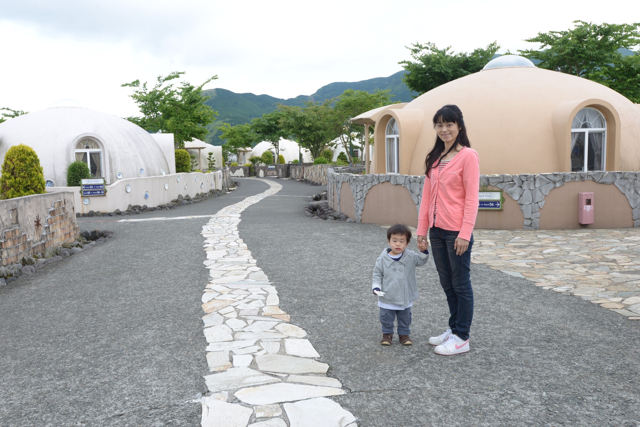 這次的行程安排一天住在阿蘇火山的山腳下,目的是為了方便前往阿蘇火山以及高千穗峽,找了一陣子住宿,決定了這位在阿蘇國立公園健康之森內的 ASO Farm Village。網路上這間 village 的資訊還不少,原因是這間 village 招攬很多的團客,台灣與韓國有很多團的行程會住這,所以心裡有個底,不要對這裡的住宿品質有所期待,上 Jalan 查了一下價格還不便宜,心理上有些不平衡,因為這代表我們有可能要讓出過多的利潤給飯店賺,但是這造型獨特的圓弧形農莊對小朋友來說應該是很新奇的體驗,所以心一橫就給它訂下去啦!