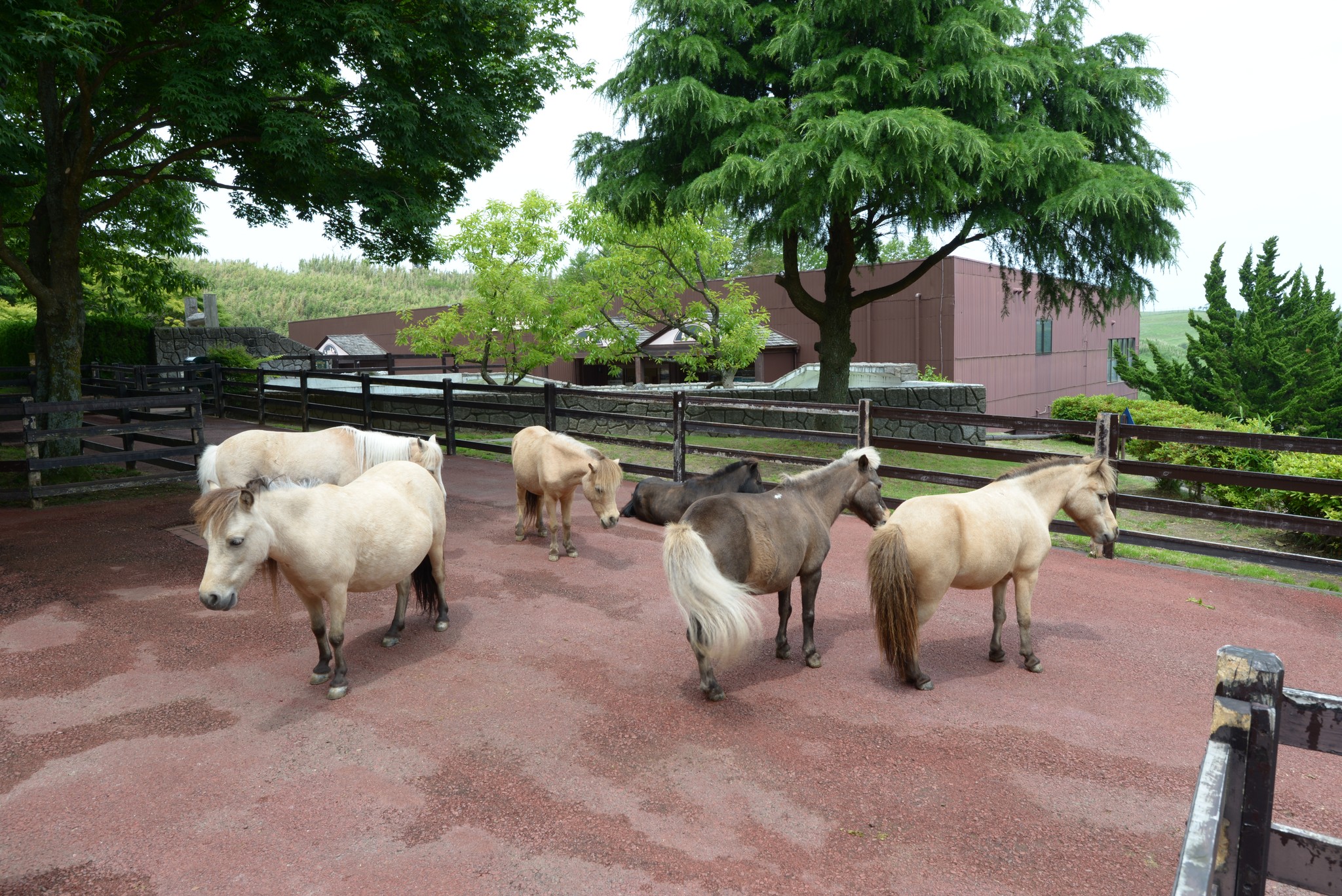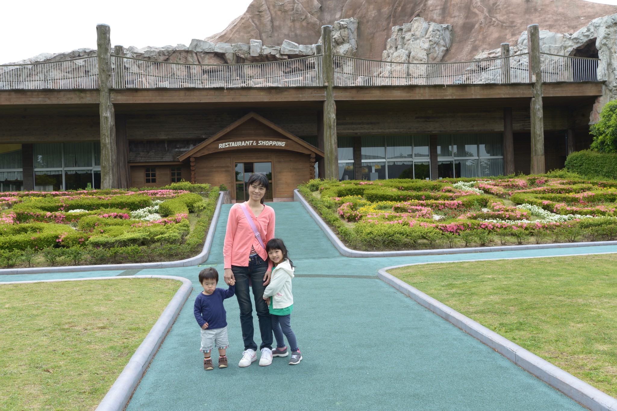 繞過餐廳這棟建築,後方就是較高檔的餐廳與可愛動物區,餐廳一樣沒開,外頭走木造房屋與園藝造景,漫步在這還挺愜意的。