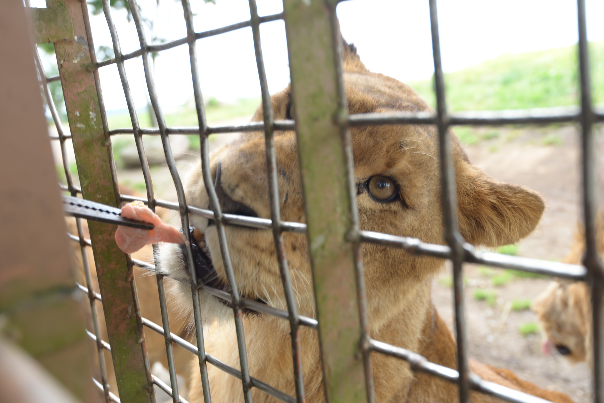 餵完熊之後就進入獅子區,也是整個 Jungle Bus 的重頭戲,吃肉肉時間!這裡的獅子真不是普通的多,平時獅子一直在睡覺,應該是車子來才醒的(就像大家上班都在睡,要吃午飯時才會醒來)。第一次這麼近距離看獅子,看起來跟家裡養的貓沒兩樣,只是比較大隻罷了。原先還以為獅子會渾身發臭(因為身上一堆蒼蠅),但似乎也和貓一樣沒什麼味道。