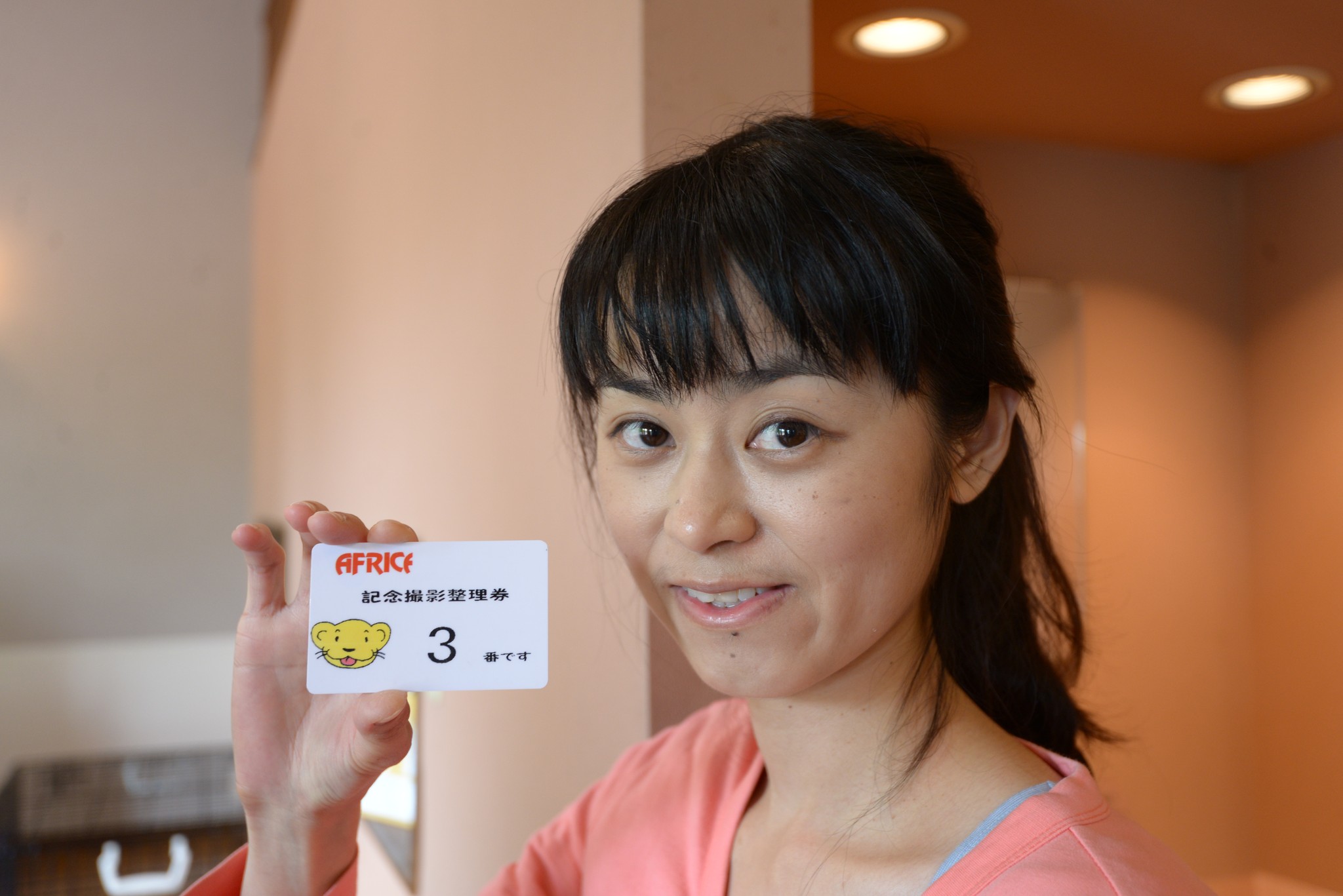 付五百隻羊就可以拿到一張整理卷,照上頭的號碼叫號上去拍照,用的是自己的相機,想要拍兩張也可以,就再多付五百元。一張照片不限定有多少人合照,所以我們是一家四口合照,為小獅子的安全考量,只能成人抱獅子,但所有人拍完照都可以摸摸它。