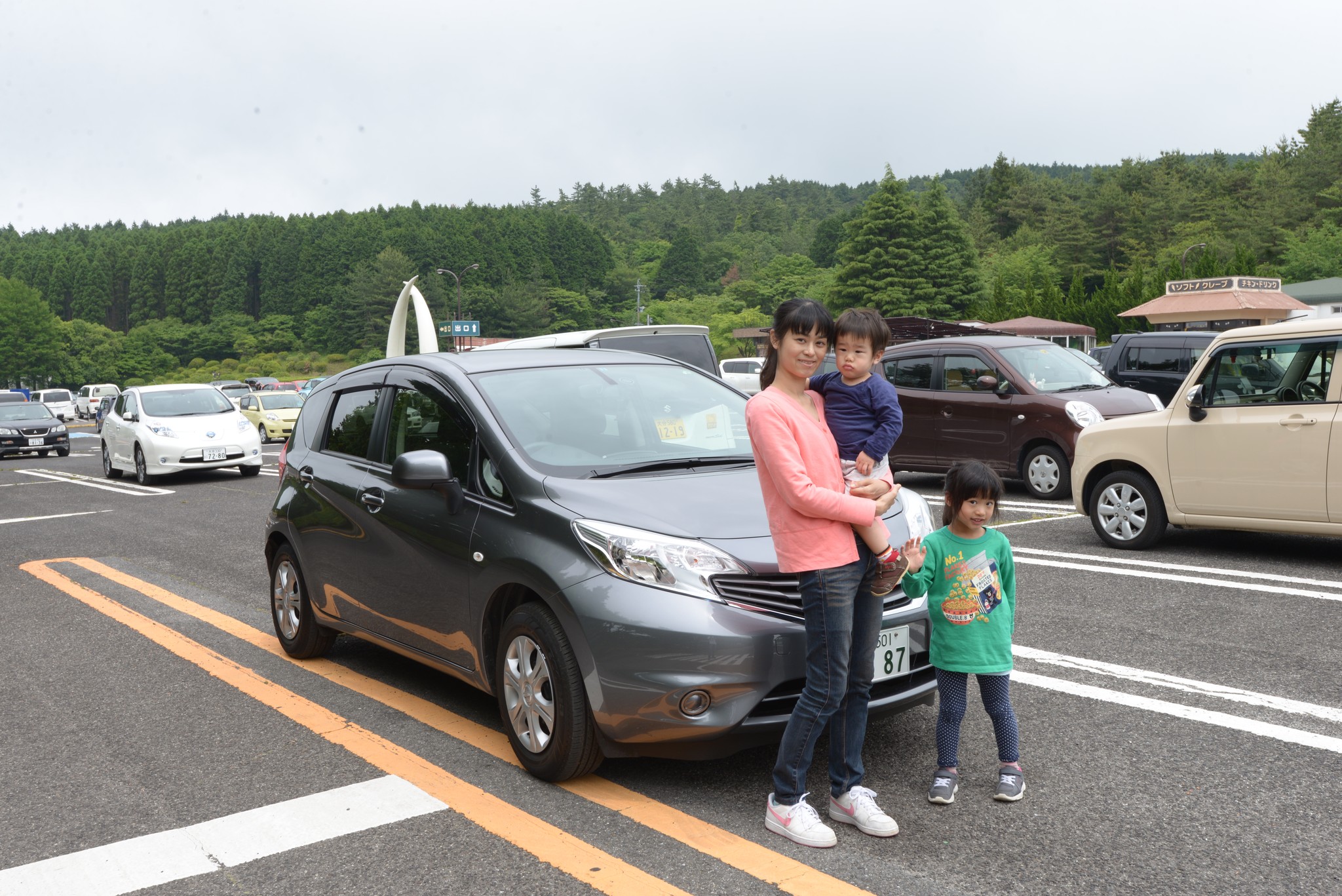 離開時車子明顯變多了,所以要來這還是早上來人比較少。這是我們橫斷九州租車的最後一天,和愛車合照一張,謝謝它四天來的照顧!