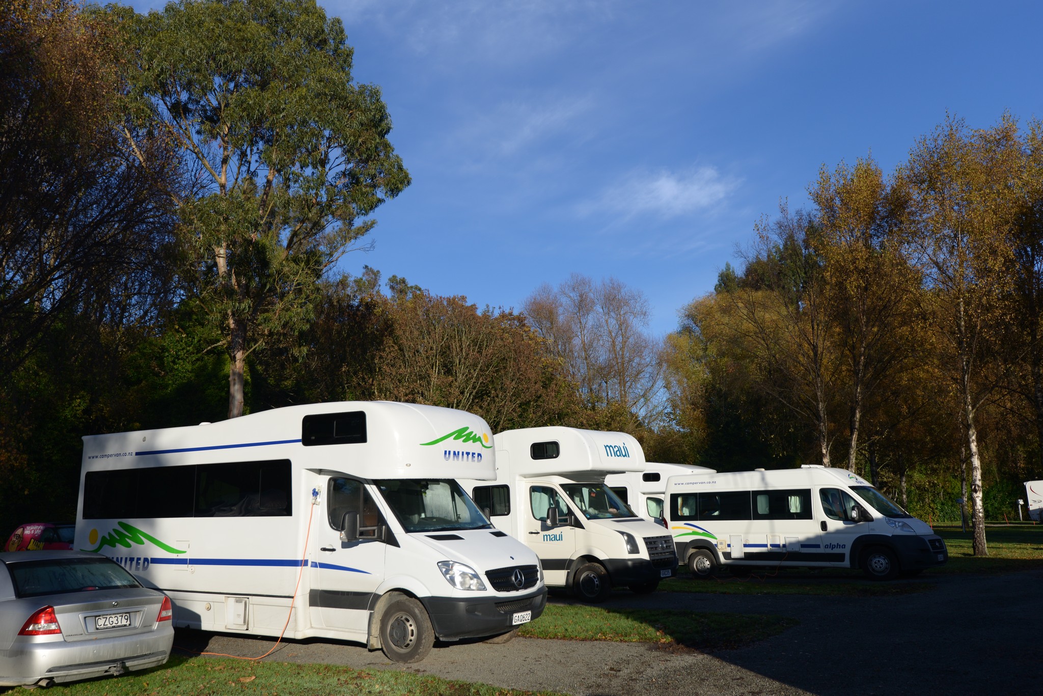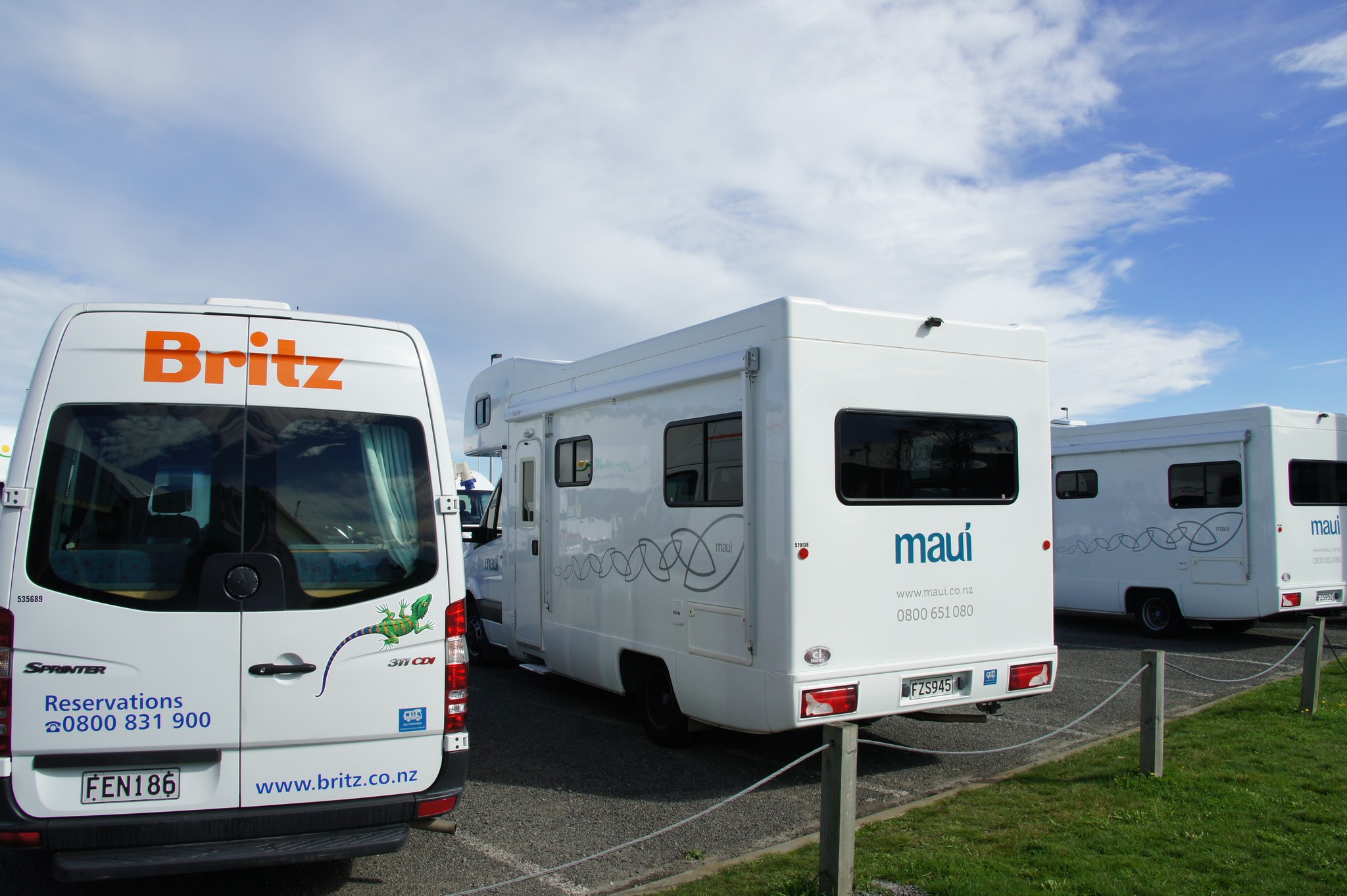 基本上,UNITED, alpha, maui, Britz 是同個老闆,機場外圍接待也是同一個地方,每到露營地幾乎都是這幾個牌子的天下(老闆賺很大),也幾乎都是觀光客在開。UNITED 保證三年以內的車,感覺上三年後就會淘汰下來掛 alpha 的牌子,所以 UNITED 與 alpha 的車型也幾乎雷同。而 maui 與 Britz 也是同樣操作,maui 的品牌操作位階較高,下來的車子就掛 Britz。