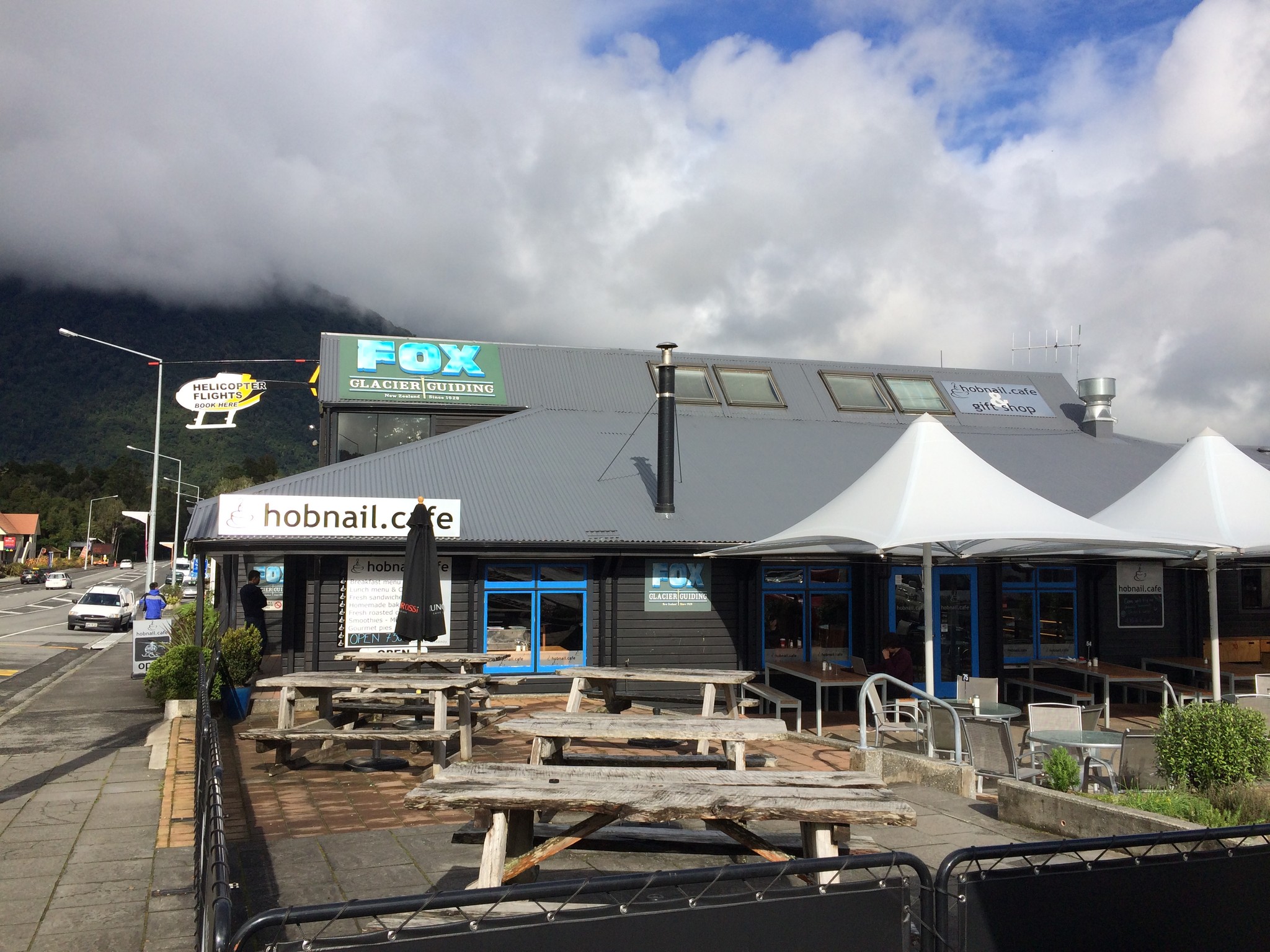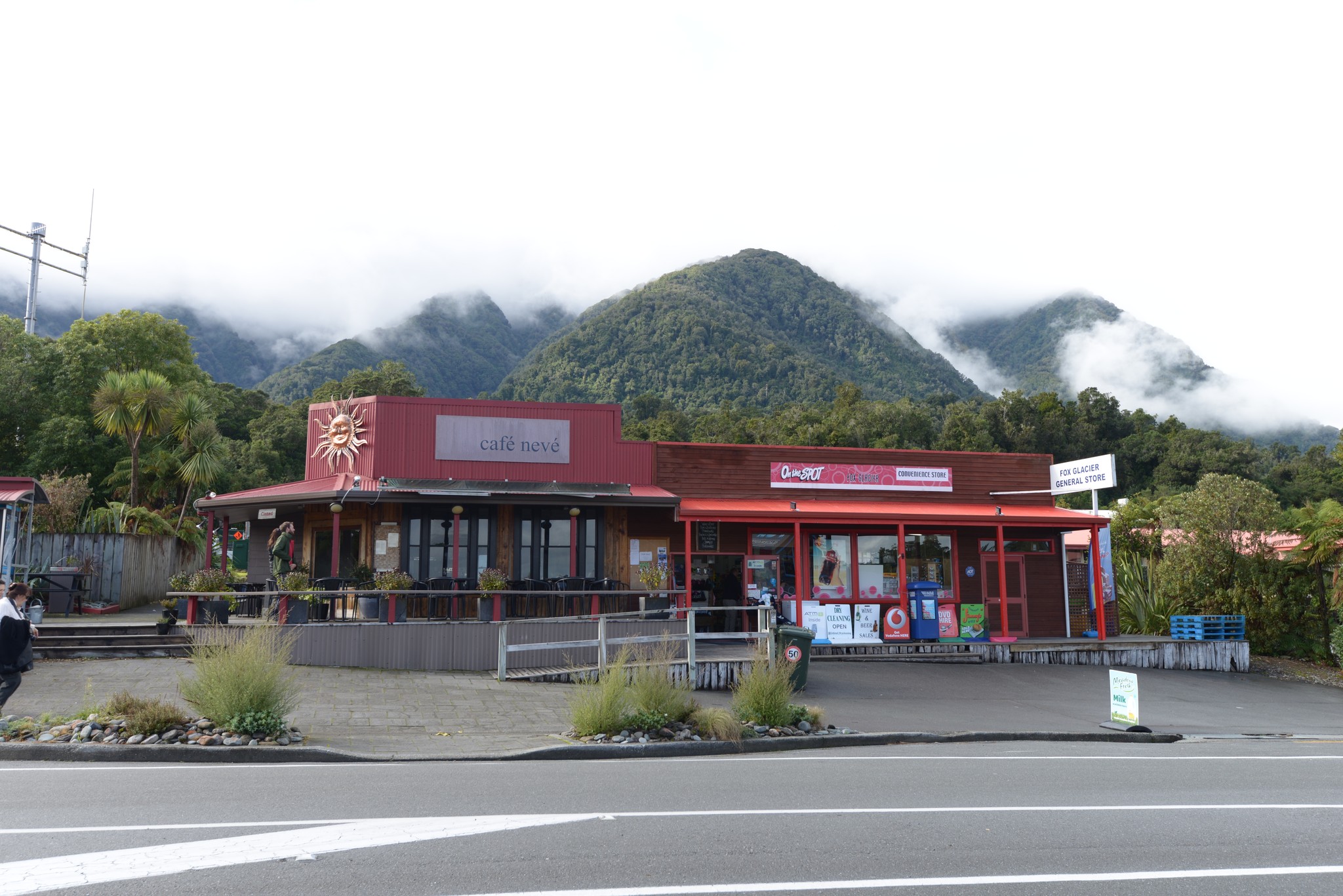 hobnail.cafe 對街的 On the SPOT 是 Fox Glacier 上唯一的一間雜貨店,吃完午餐到此補貨順便殺時間,才逛到一半,天空下起諾大的雨滴,把我心澆涼了一半,看來今天得放棄!