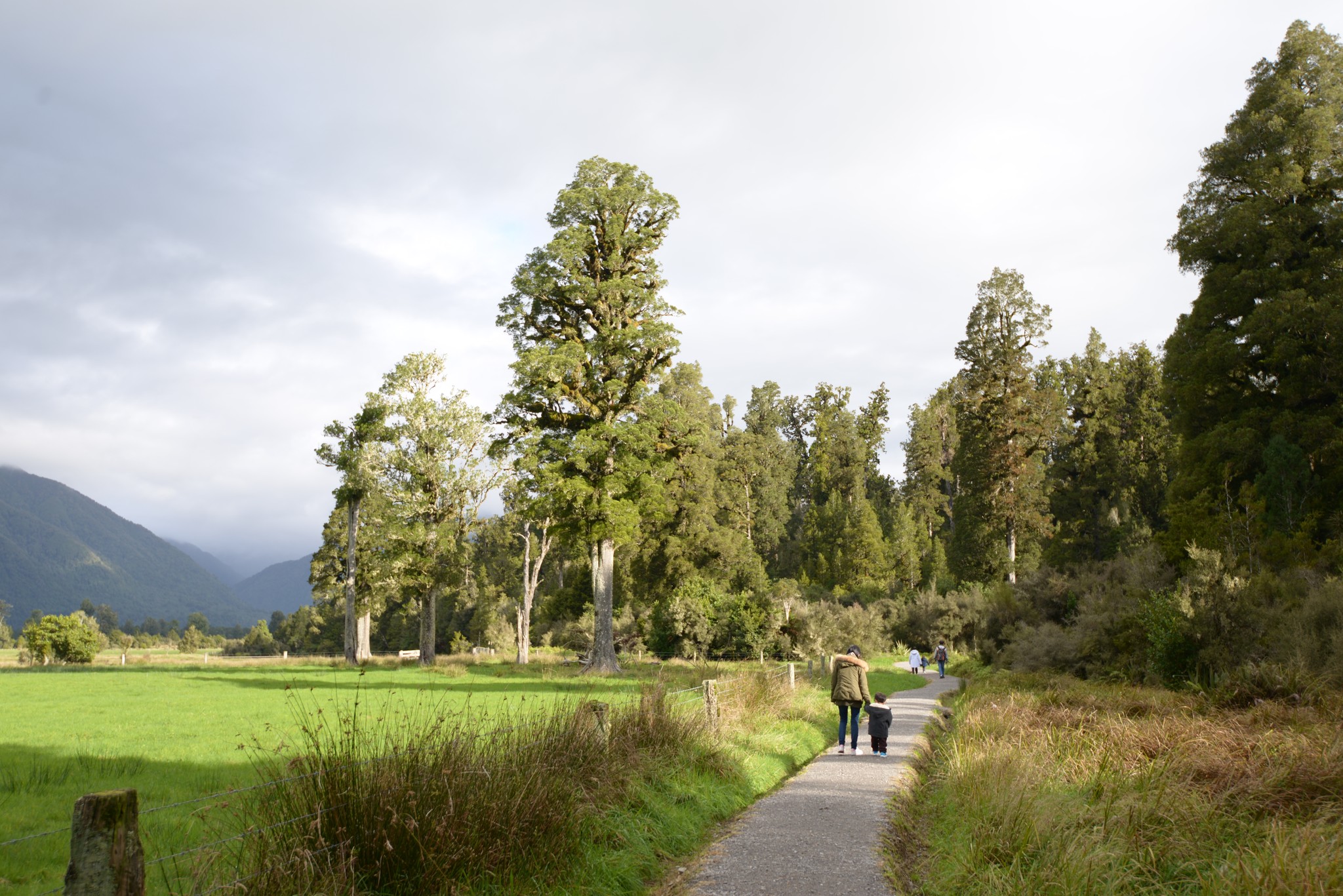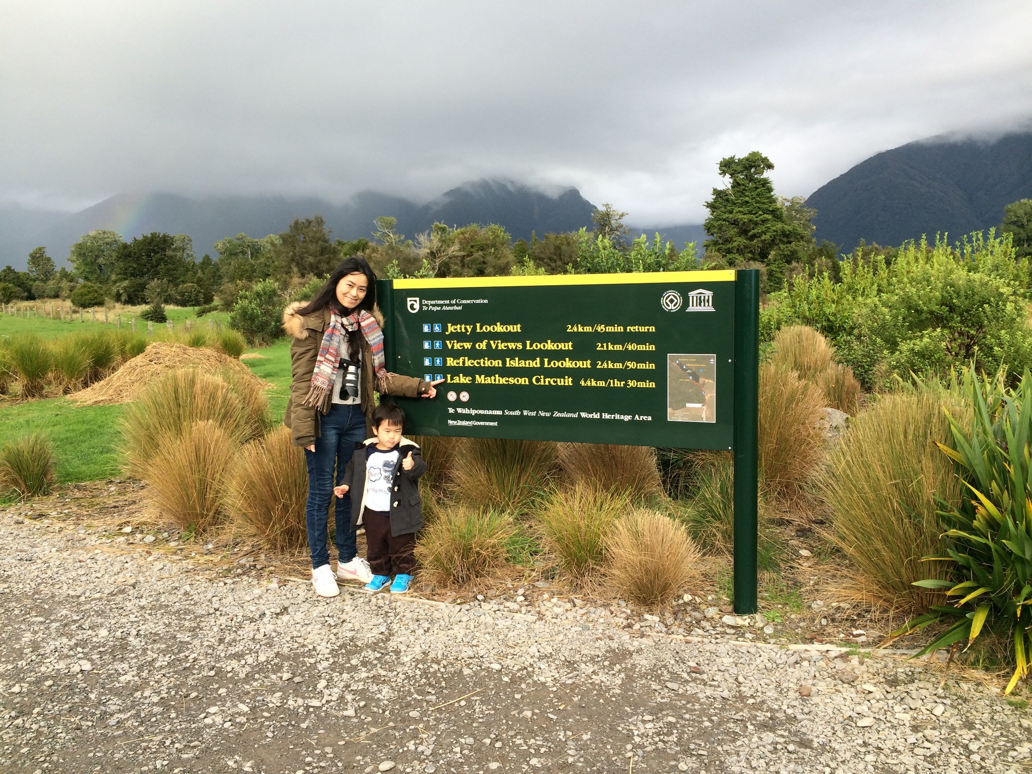 Lake Matheson 規劃了四條路徑,若時間不允許的話,可以選擇四十多分鐘來回的 View of Views Lookout。而 Reflection Island 要在天氣好無風的情況下才能看得到庫克山的倒影,要選這條路徑請斟酌天氣狀況。我們走的 Circuit 可以環湖一圈,所有的 Lookout 都會經過,陳小弟很棒呦,全程 4.4 公里自己走完,給他一個讚。