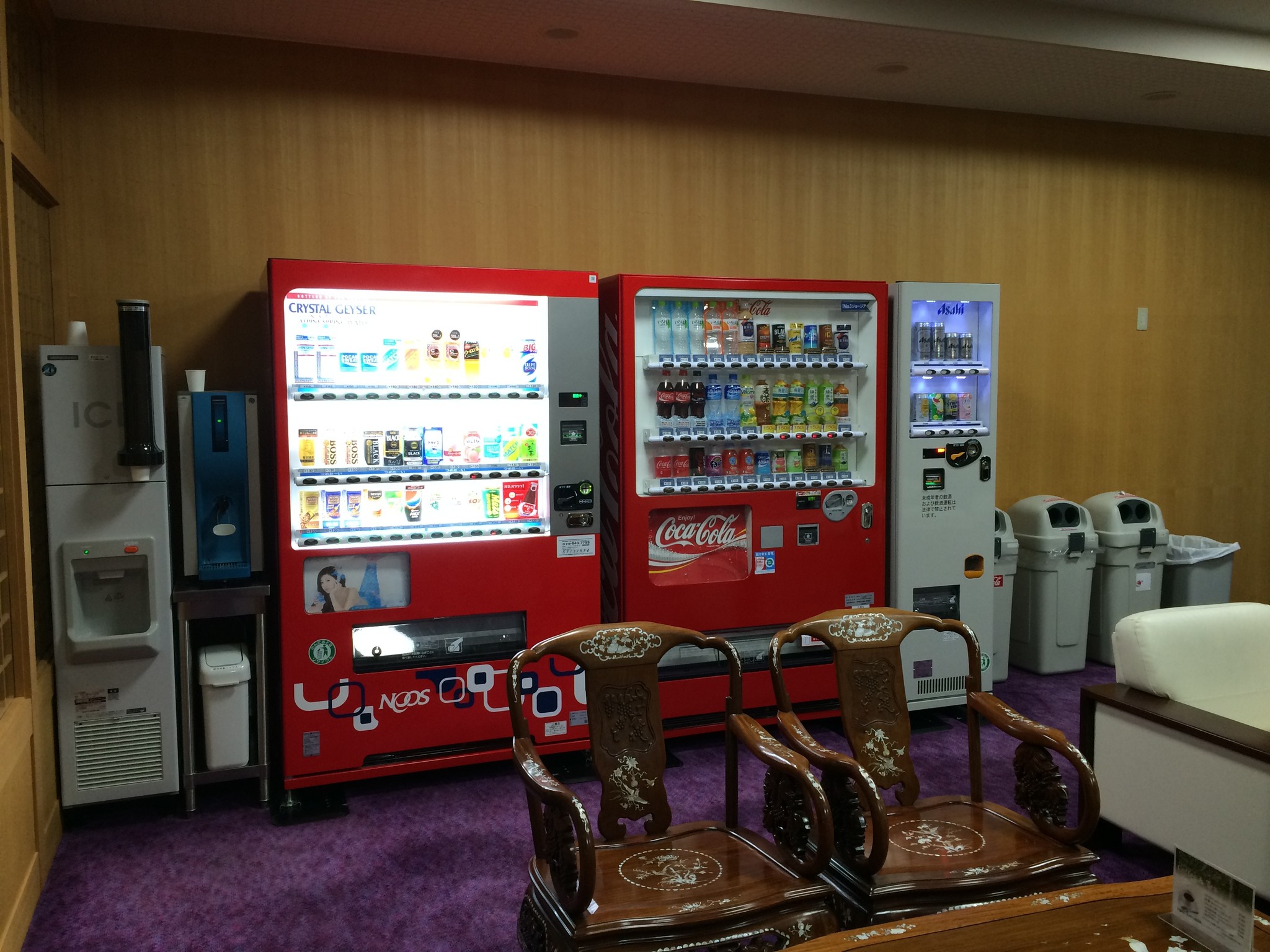 因為飯店位於半山腰,進出不太方便,交誼廳有自動販賣機可以買飲料,另外,櫃檯旁還有一小區,賣一些土產零食泡麵,晚上肚子餓了也不至於找不到東西吃。