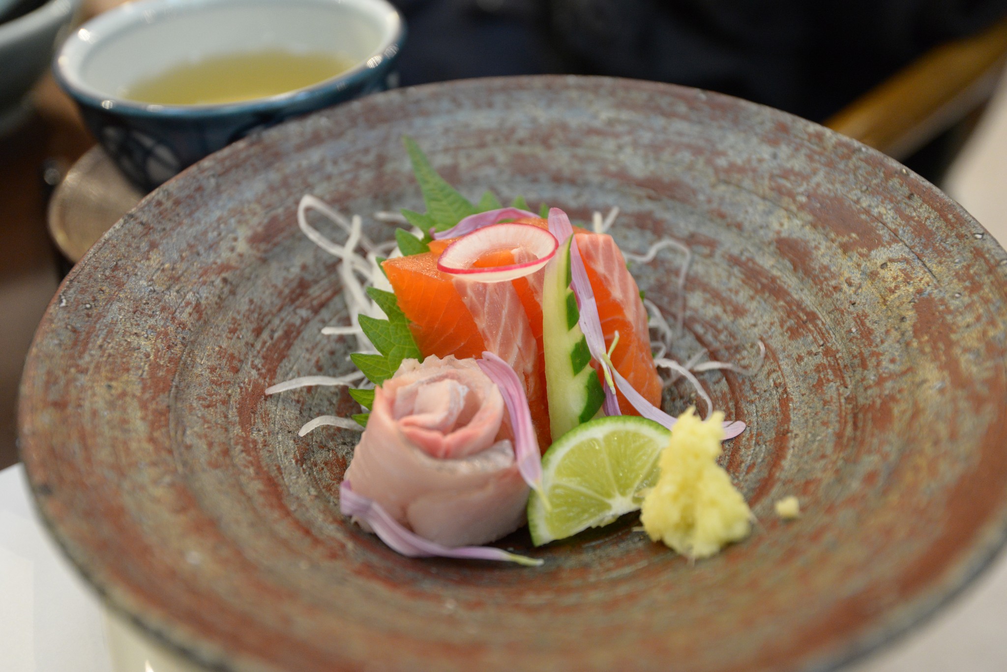 生魚片很新鮮吃得出香甜,貓大王不吃生的,雖然很失禮,但她還是把魚肉跟牛一起給烹了。