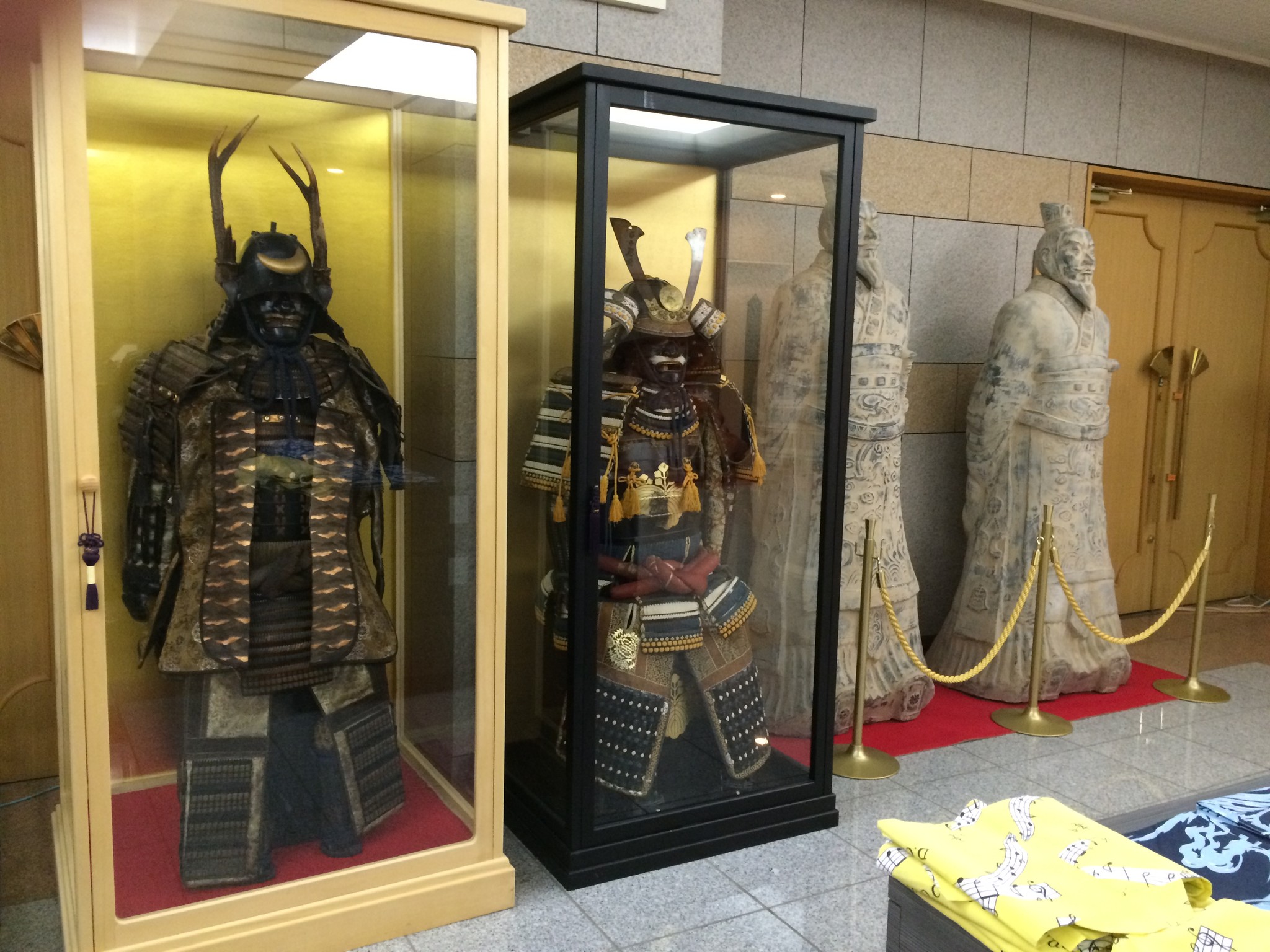 一樓的擺設挺老派的,除了有巨木枝外,還有嚇死人的兵馬俑和鎧甲,搞不好半夜在對面挑浴衣時還會有人提供妳建議。(誤)