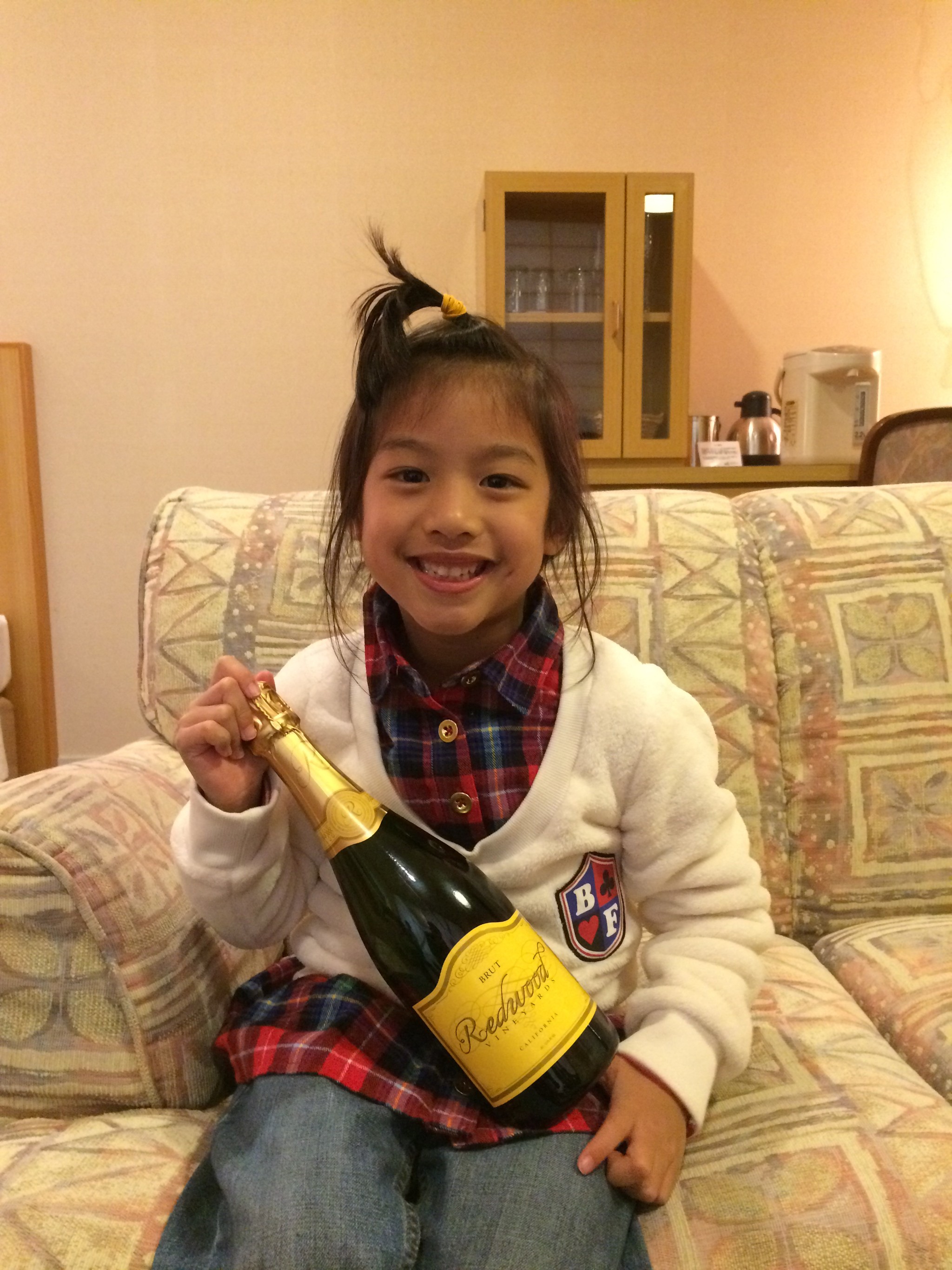 冰箱還附贈一瓶免費的酒,不喝酒的我們只好拿出來裝個樣子,呵呵~