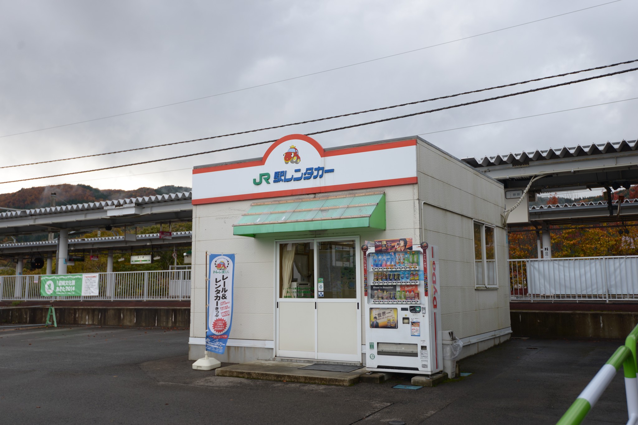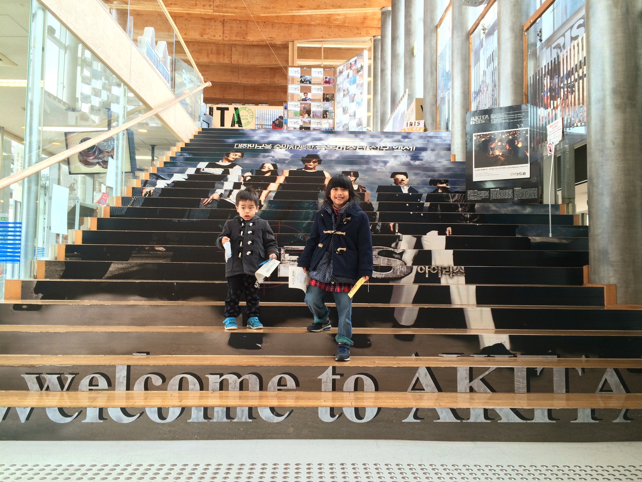 田澤湖第一站,田澤湖車站(啥?)。沒想到這裏這麼樣的冷清,外頭下雨無法拍出美美的建築物,只好進車站走走。田澤湖因為韓劇 IRIS2 在此拍攝取景,車站內(很狗腿的)有一大片區域展示 IRIS2 的相關劇照。基於哈日哈韓勢不兩立(誰規定的?),ISIR2 不配我蹲低取景,所以這階梯拍得完全沒對準。