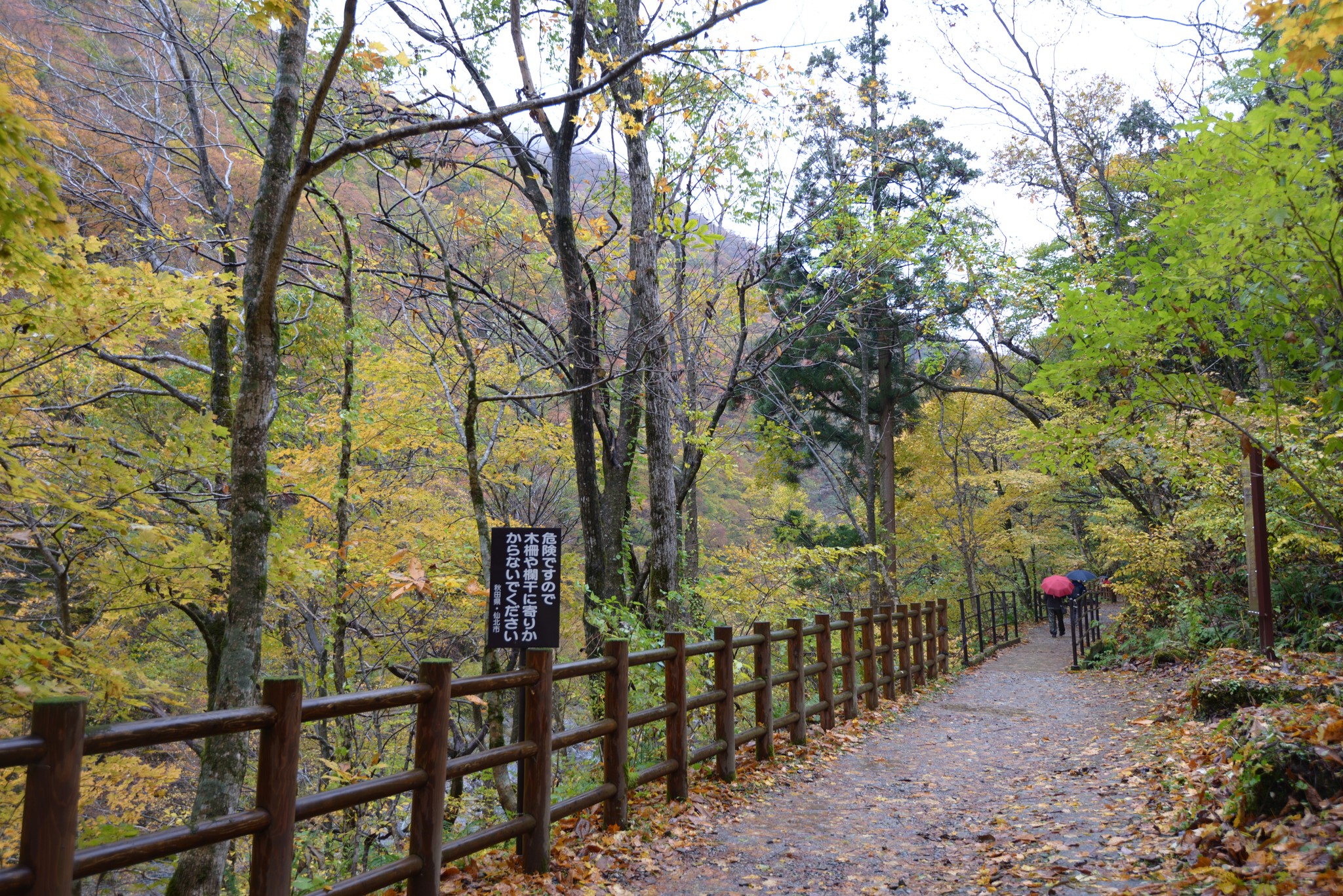 諾大的霧氣讓紅葉的顏色出不來,開始後悔當初執著後不後院的,至少角館不會腳踏泥濘。