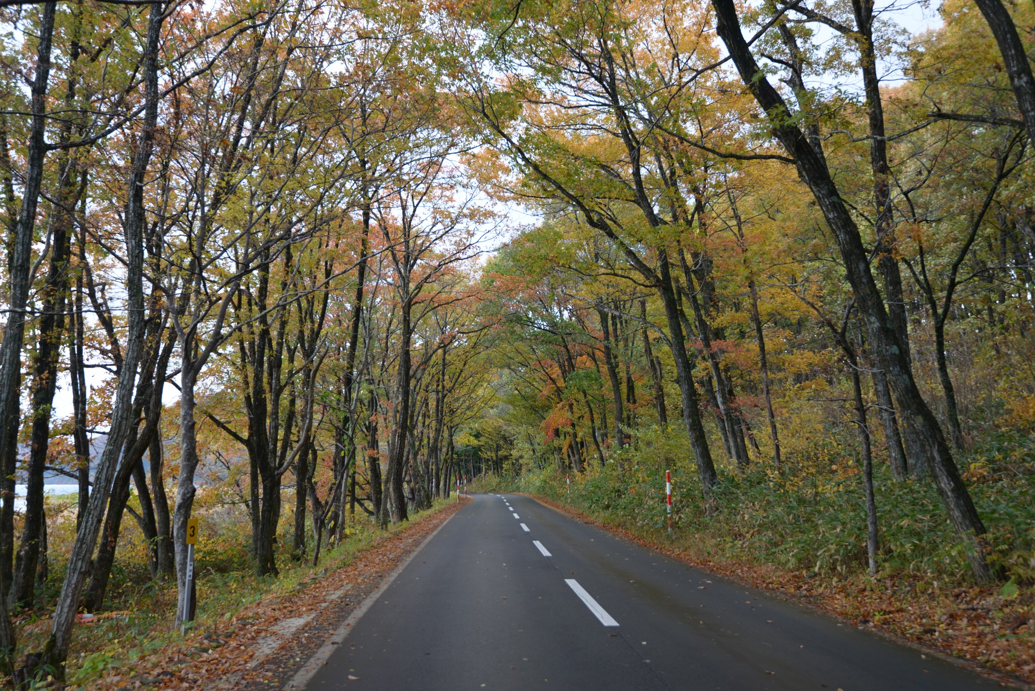離開爆雪的ホテルグランド天空,山下雖無飄雪,但雨勢仍不小。大霧退去後通透的空氣中紅葉逆出,煞是耀眼,跟貓大王嘀咕若逛完田澤湖後有時間再逆勢上乳頭溫泉看看。