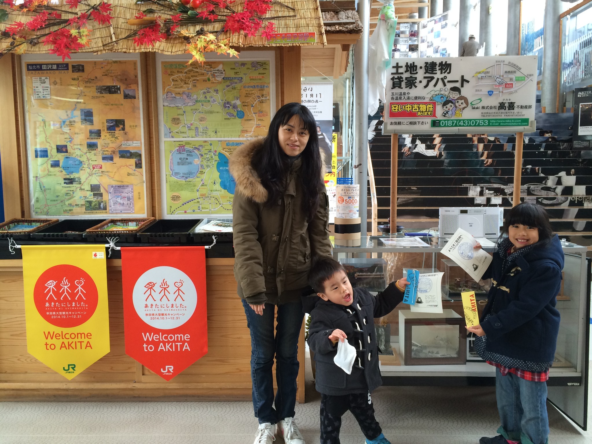 很奇妙的不動產攤位居然可蓋紀念印章,兩小人對這個興致倒是比較高昂,田澤湖車站呀,我真是不懂你!