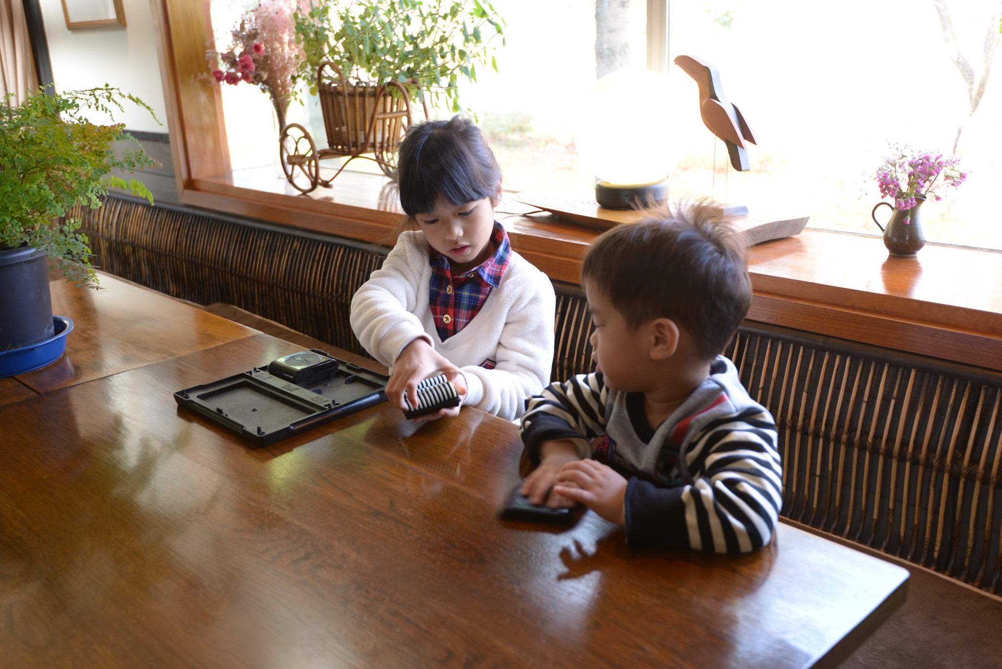 先把小人餵飽後,女主人熱情招呼他們玩放在餐廳的玩具,倒是他們倆害羞的不敢回應。