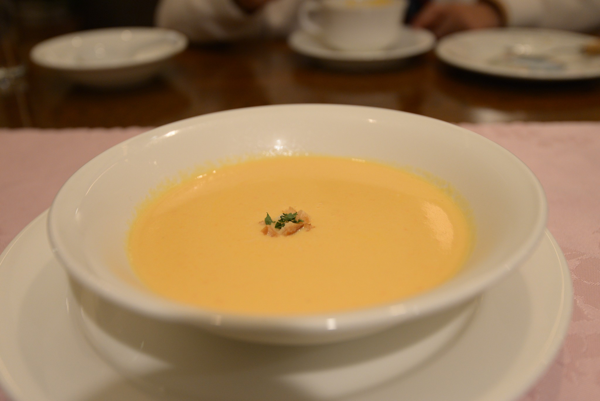 湯品,這道一上來我們還很低俗的以為是南瓜湯,喝下去才驚覺是胡蘿蔔湯,甜甜的好好喝,兩隻小人沒點餐男主人也各招待一小碗。