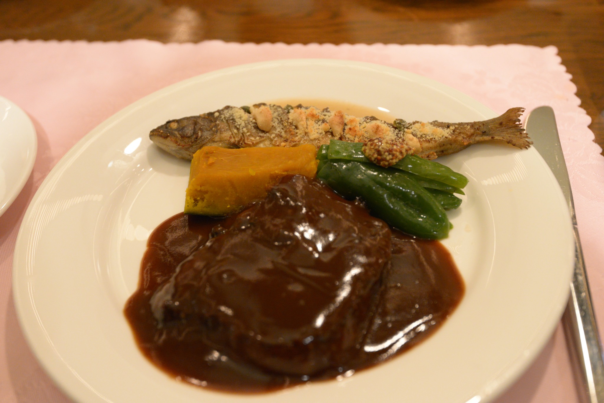 主菜,燉牛舌與岩魚,牛舌燉到軟爛,岩魚煎到酥脆,好食極了!