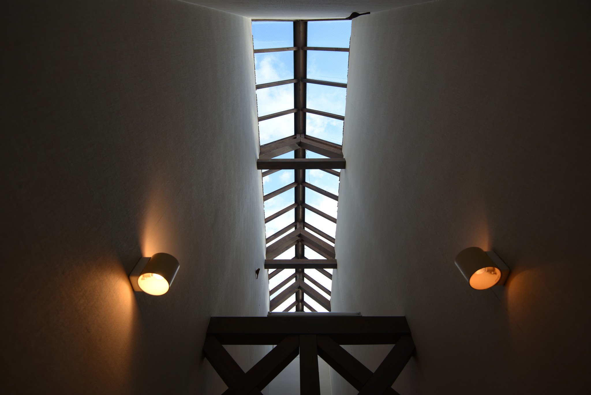 隔天起了大早,這天天氣晴朗,讓我稍稍放心,因為這天的行程是這次旅遊的重點,要走奧入瀨溪流。Pension Mockingbird 的建築很有特色,走廊的正上方斜頂中央裝上玻璃,讓光線自然的灑落,讓人一早心情就很愉悅。