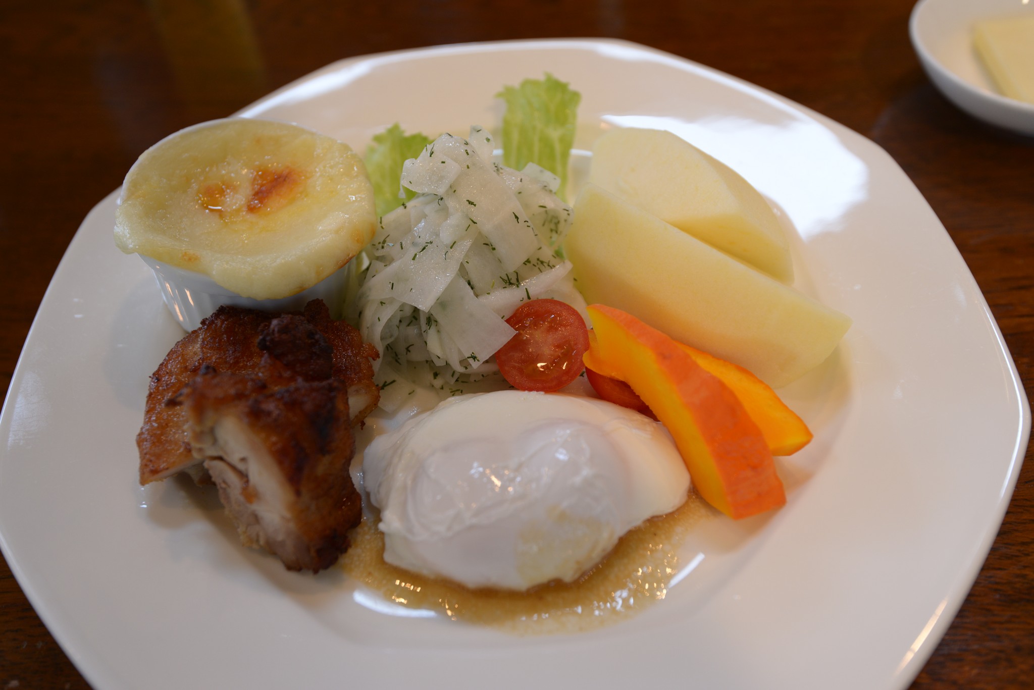 早餐可一點都不馬乎,有侷烤土豆泥,涼拌蘿蔔,水煮雞蛋,炸雞,南瓜與蘋果。這會不會太豐盛了!