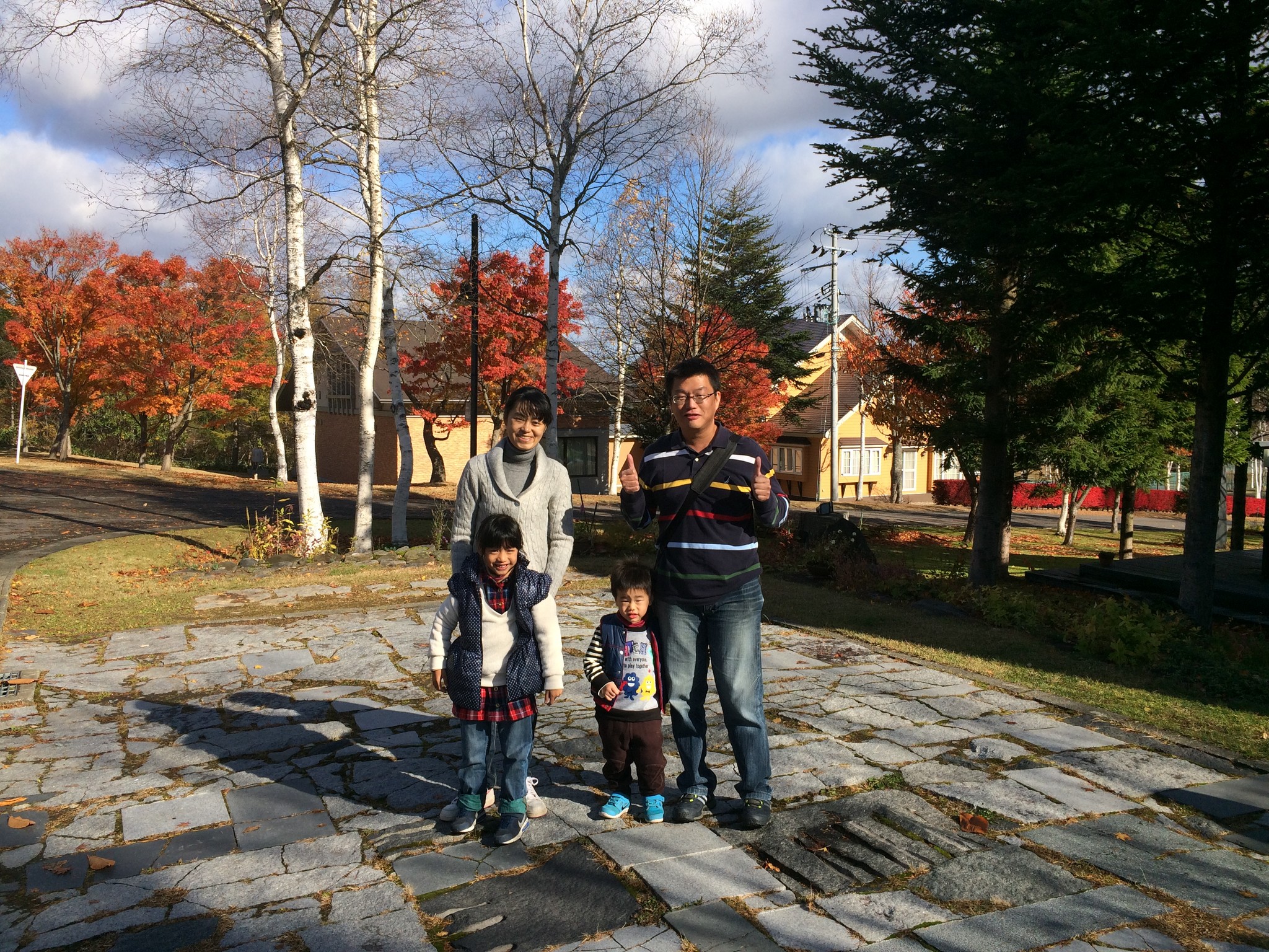 安比高原真是漂亮的好地方!男主人熱情的幫我們一家四口照相。