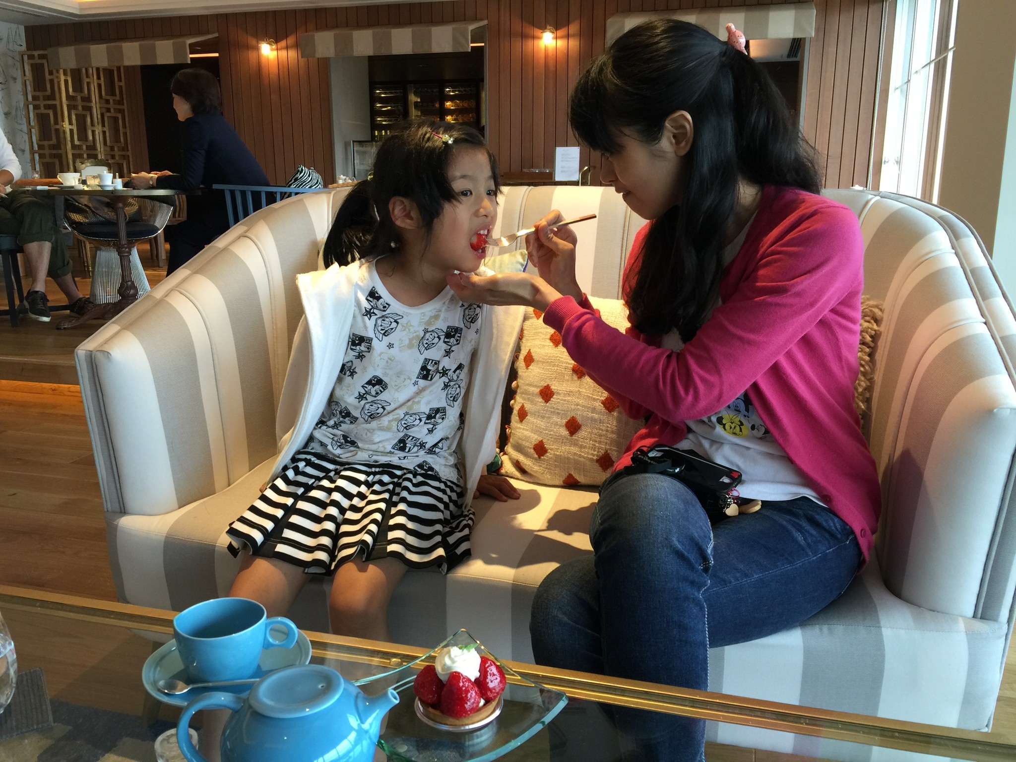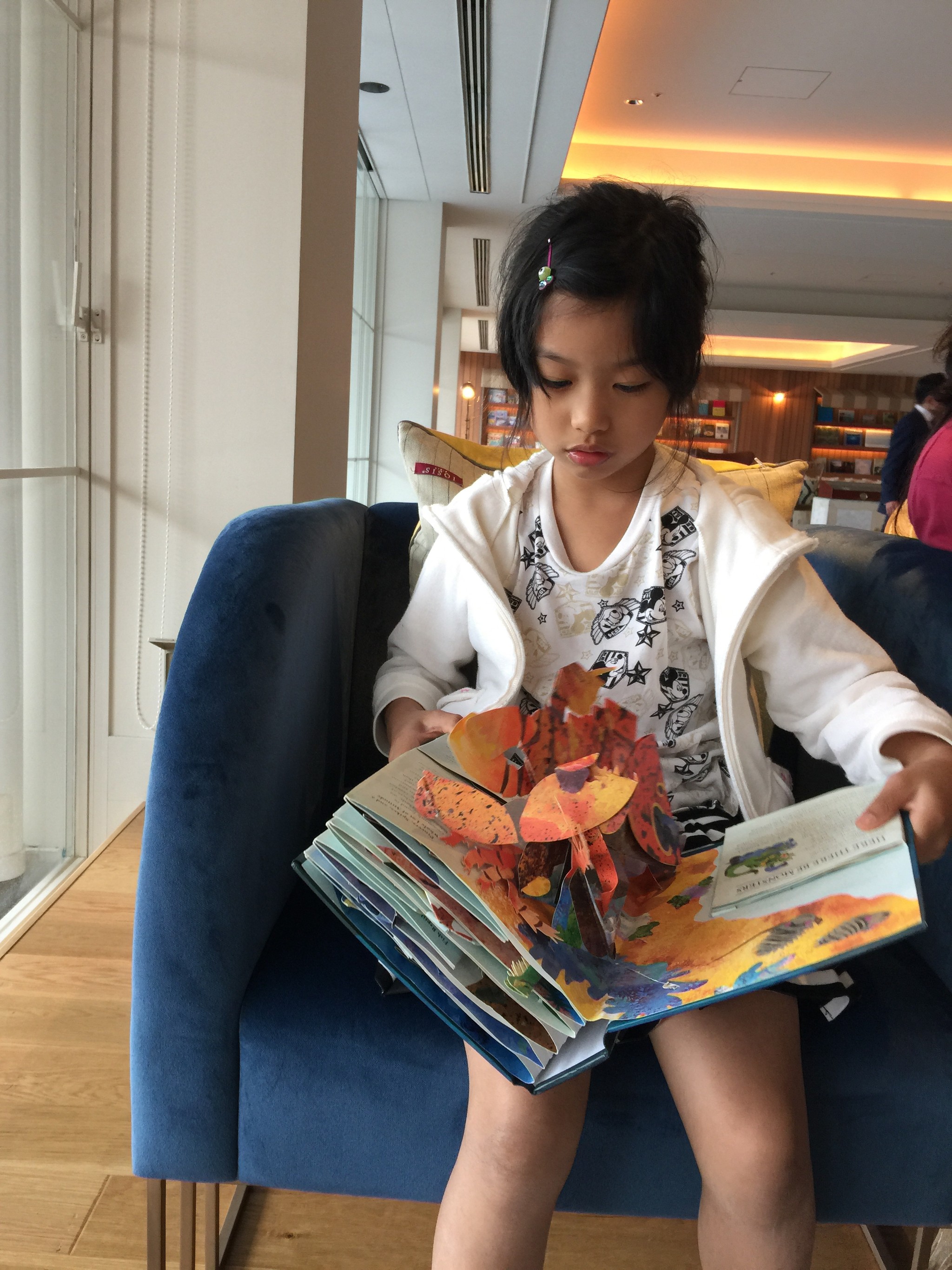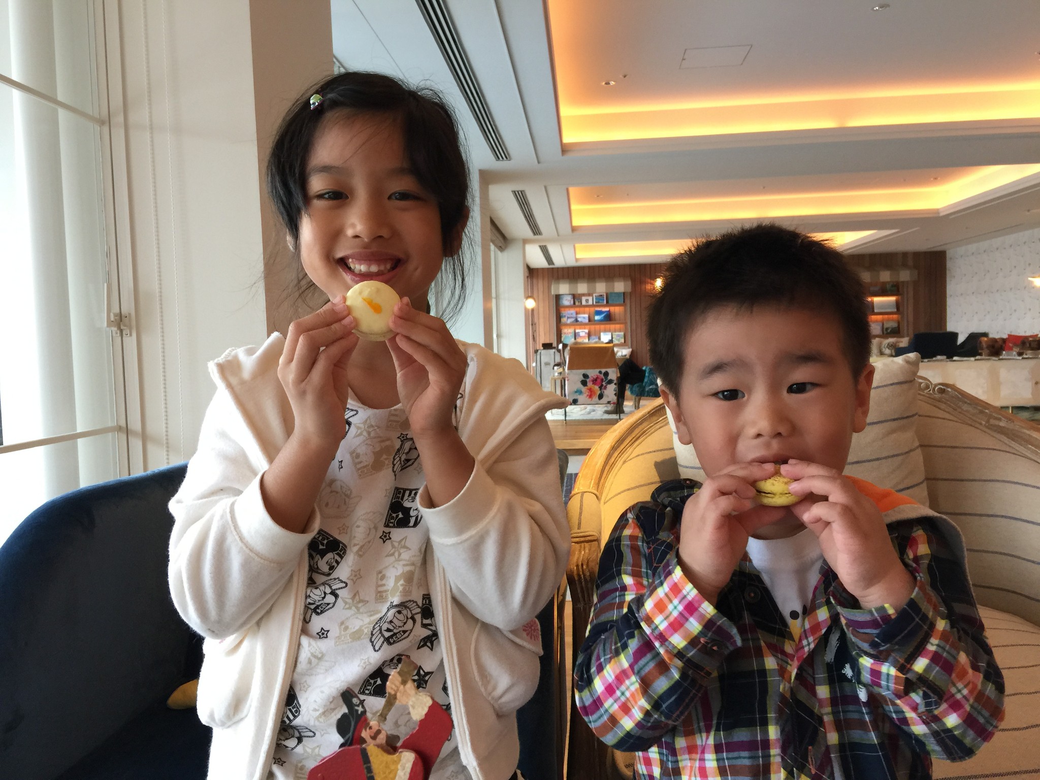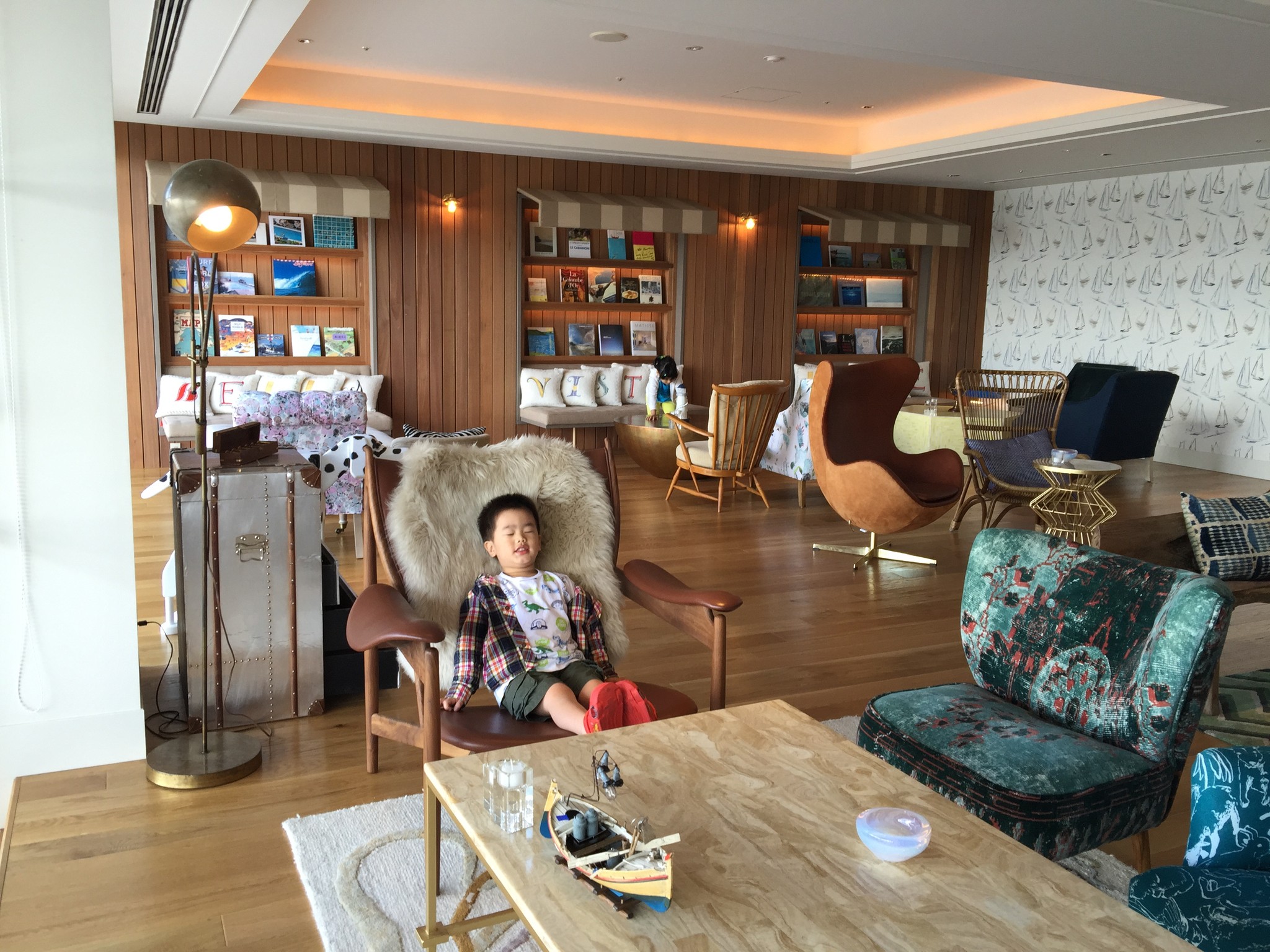 大門入口的右手邊是 Reception,左邊擺放沙發在此喝 welcome drink 與 check-in。桌上的 candy 是可以隨意享用的,貓大王有跟櫃台拿了小袋子給小孩裝到 The Lobby 吃。
