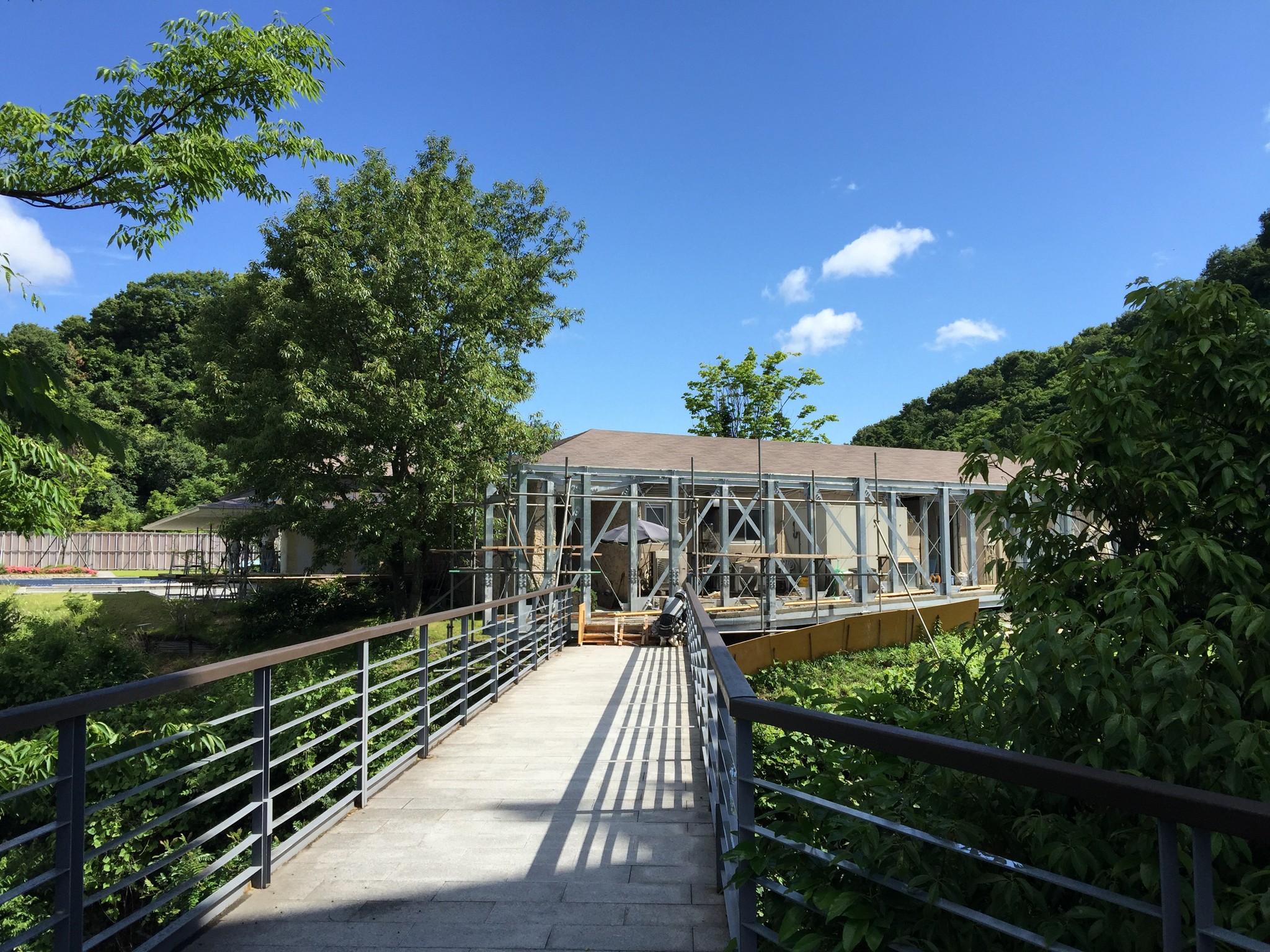 因為「 Erretegia(エレテギア)」的施工,我們造訪的時候往モザイク Mozaic 游泳池的橋封掉了,我們只能在此遠望美麗的教堂リボンチャペル RIBBON CHAPEL,實在可惜!