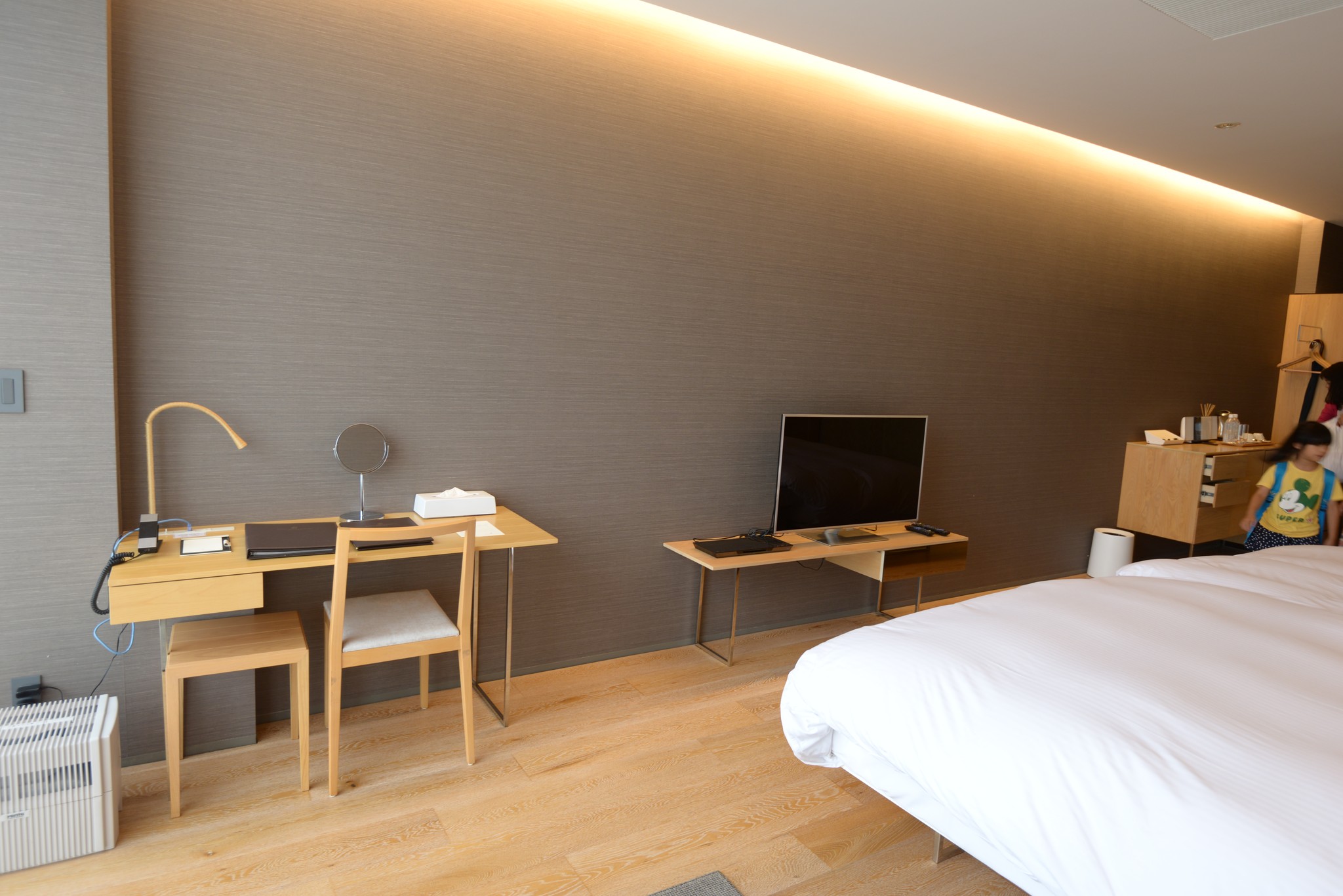 另一側則是加濕器、簡單書桌、42 寸大型液晶電視、藍光 DVD、iPod 對應音響以及 mini bar。