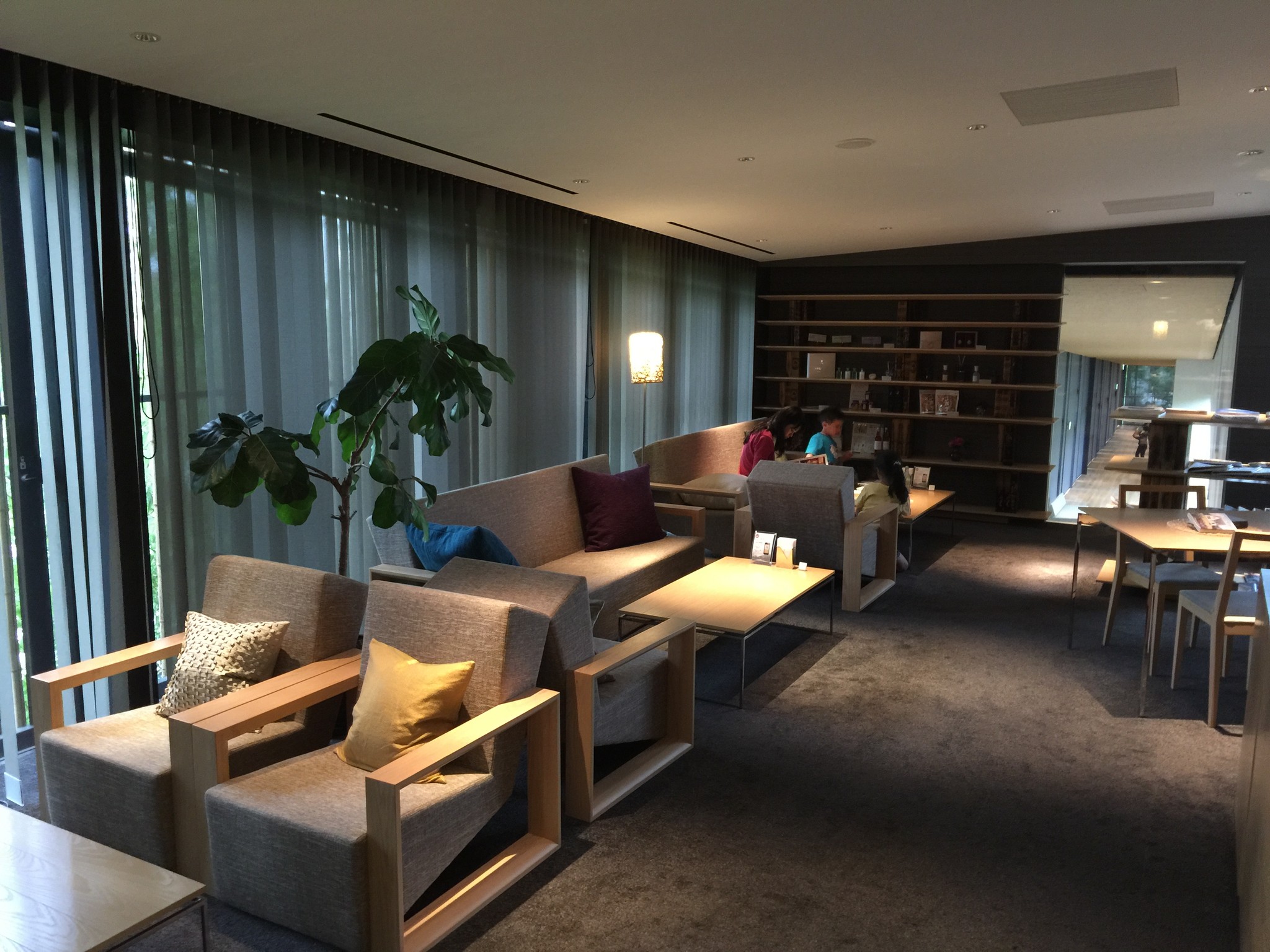 禁不住想去去教堂探險的誘惑,我們決定在館內走走。館內大廳大氣典雅,落地窗外竹影扶疏,有那麼點禪意。