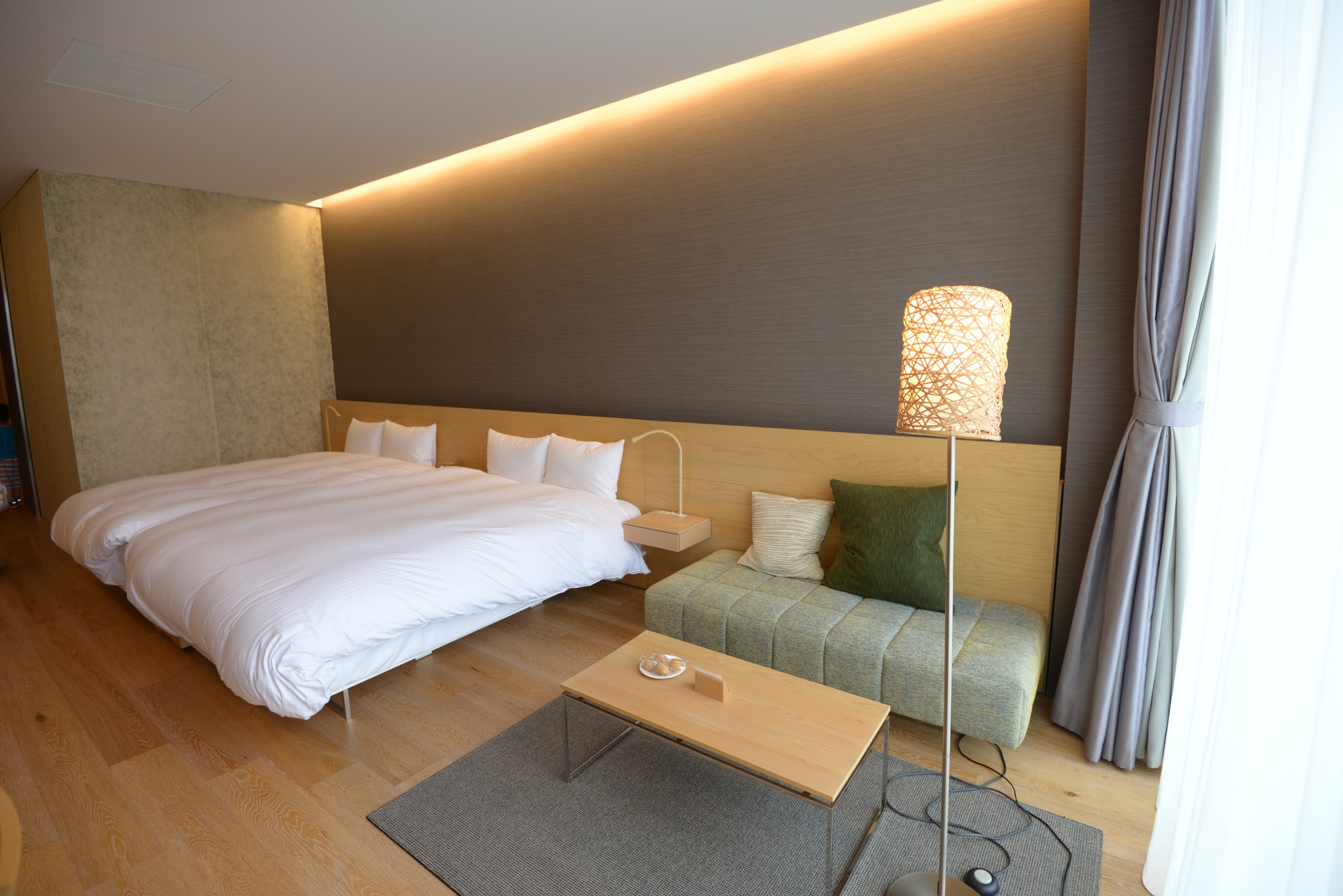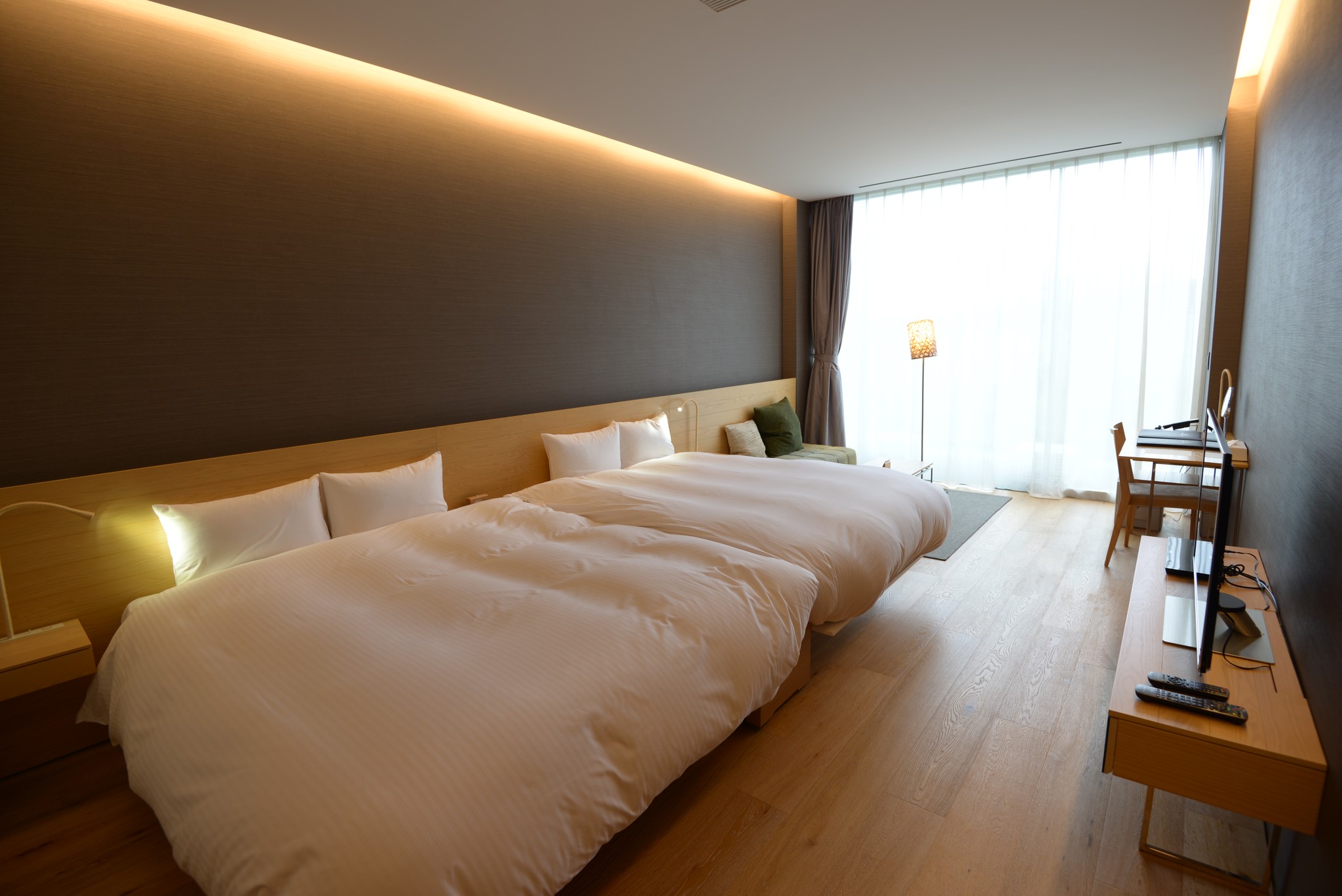 來看看房間吧,房內空間大量採用超耐磨木質地板,加上暖色系照明,簡潔而溫馨。床鋪採用幅140cm × 長さ200cm × 高さ30cm 席夢思雙人床兩張,睡起來非常舒適。