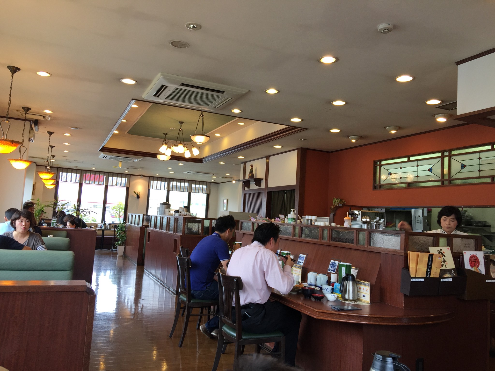 服務人員親切的引導入座,已過個正中午餐時間店內仍座無虛席,裝潢走的是家庭餐廳路線,每個桌上都有浜勝特有的生ドレッシング、生姜焼きのタレ和秘伝のソース。陳小弟特別鍾愛秘傳醬料,還差點衝動帶個幾瓶回台灣,只可惜需要冷藏,殘念!