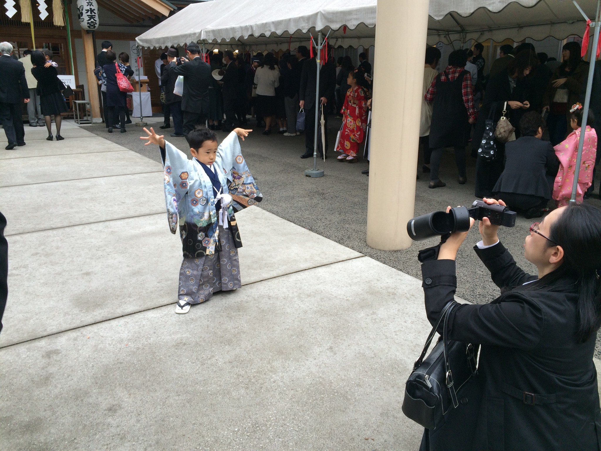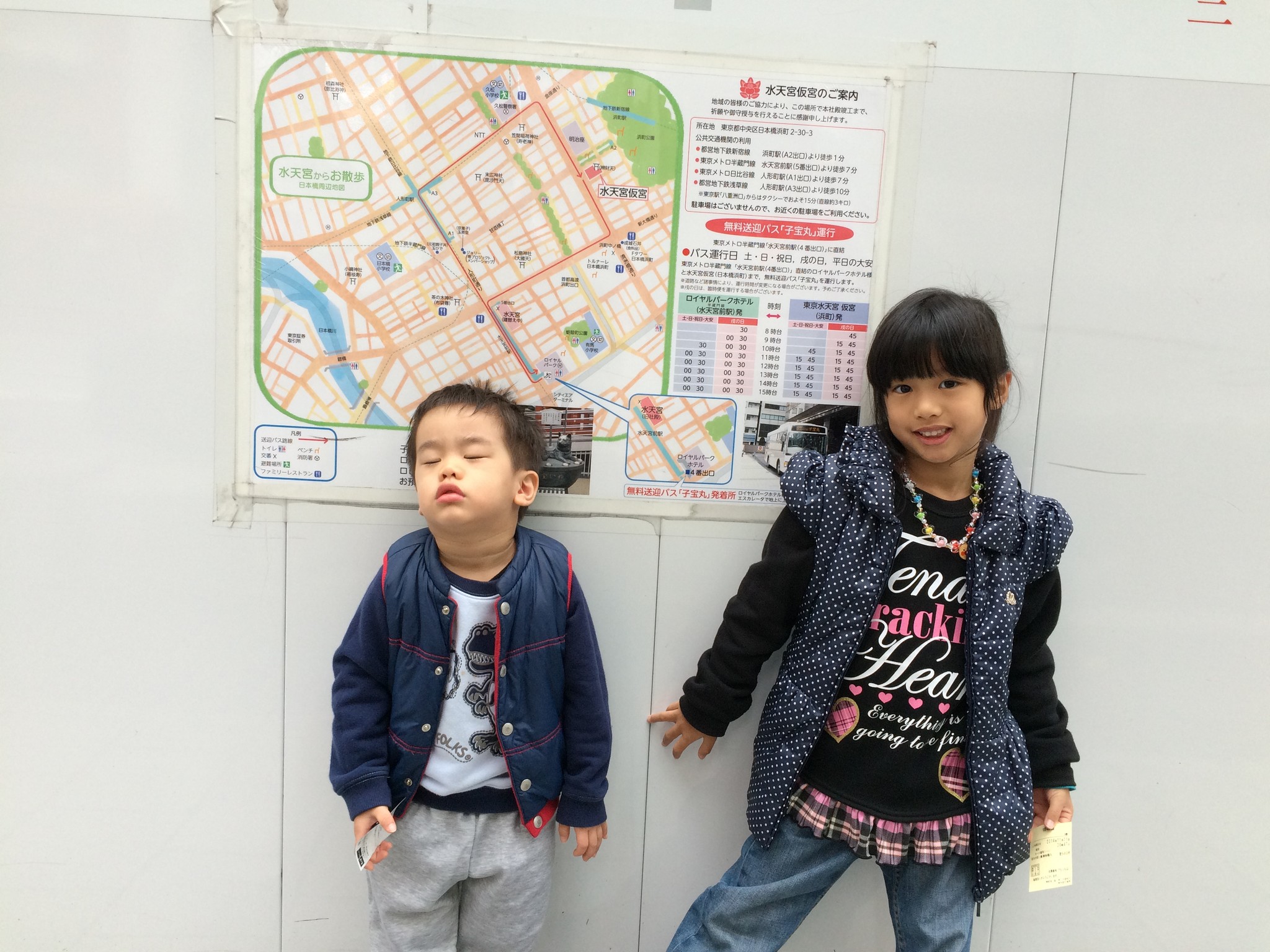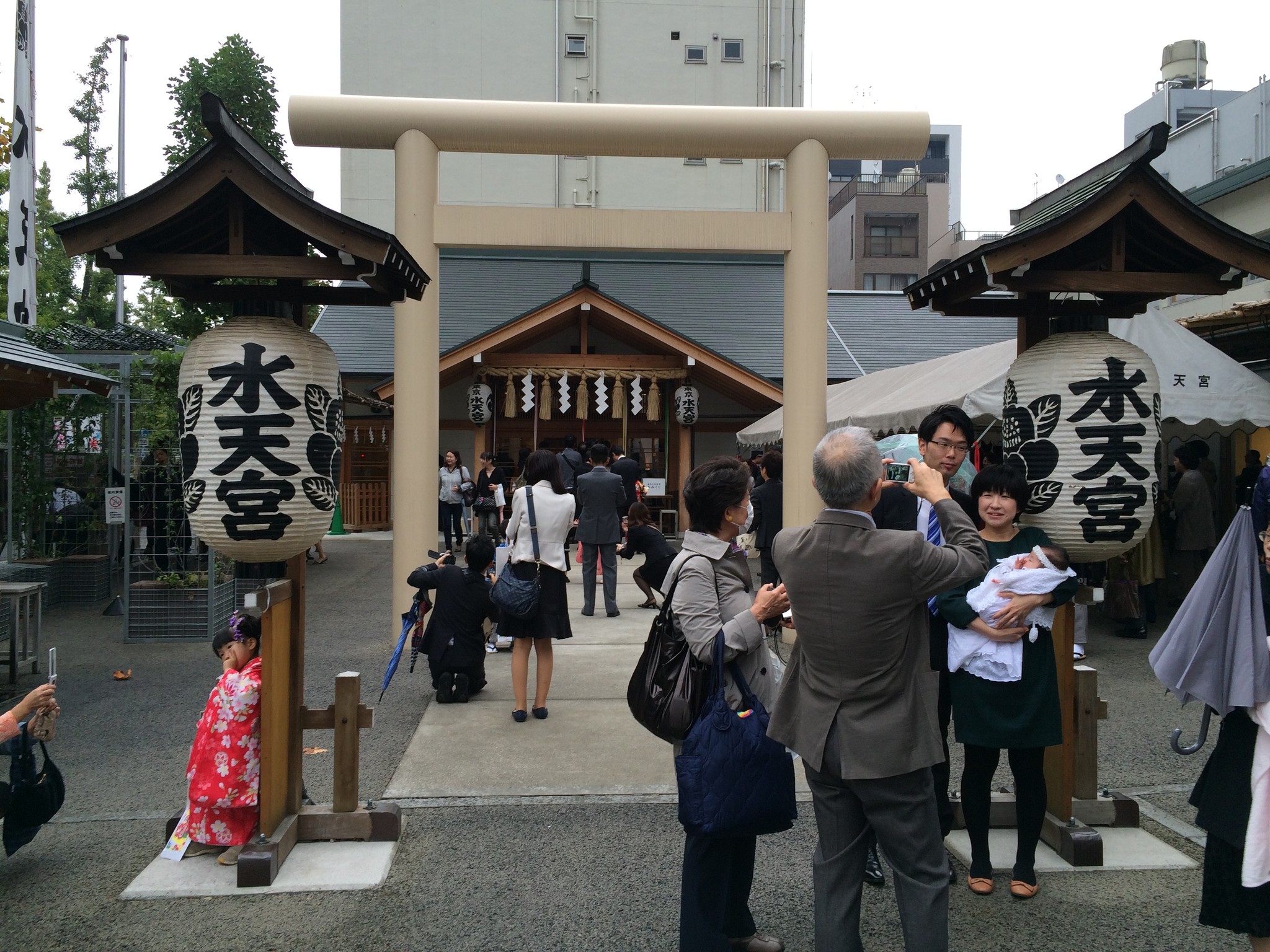 走到一半下起雨來,水天宮仮宮非常好找,只要跟著帶小孩的父母走,不一會兒就看到諾大的旗幟,到了!仮宮其實在都營地下鐵新宿線浜町的 A2 出口,不想走路的話可坐這條地下鐵。