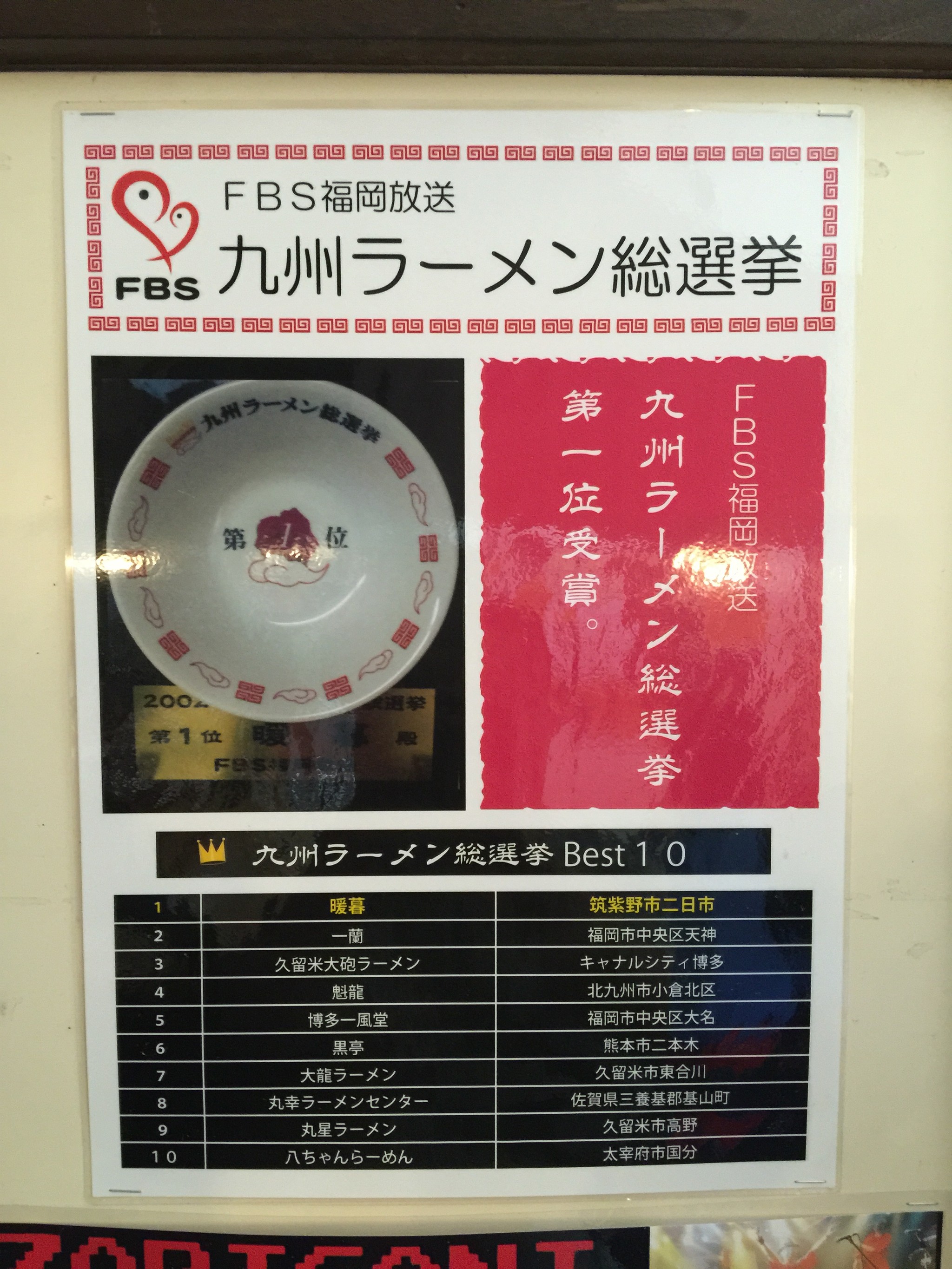 加映一下當日午晚餐,位於太宰府車站出口往左手邊就會看到有名的暖暮拉麵,雖說很有名,可是卻很不對我跟葛蘭的胃,重鹹又油膩