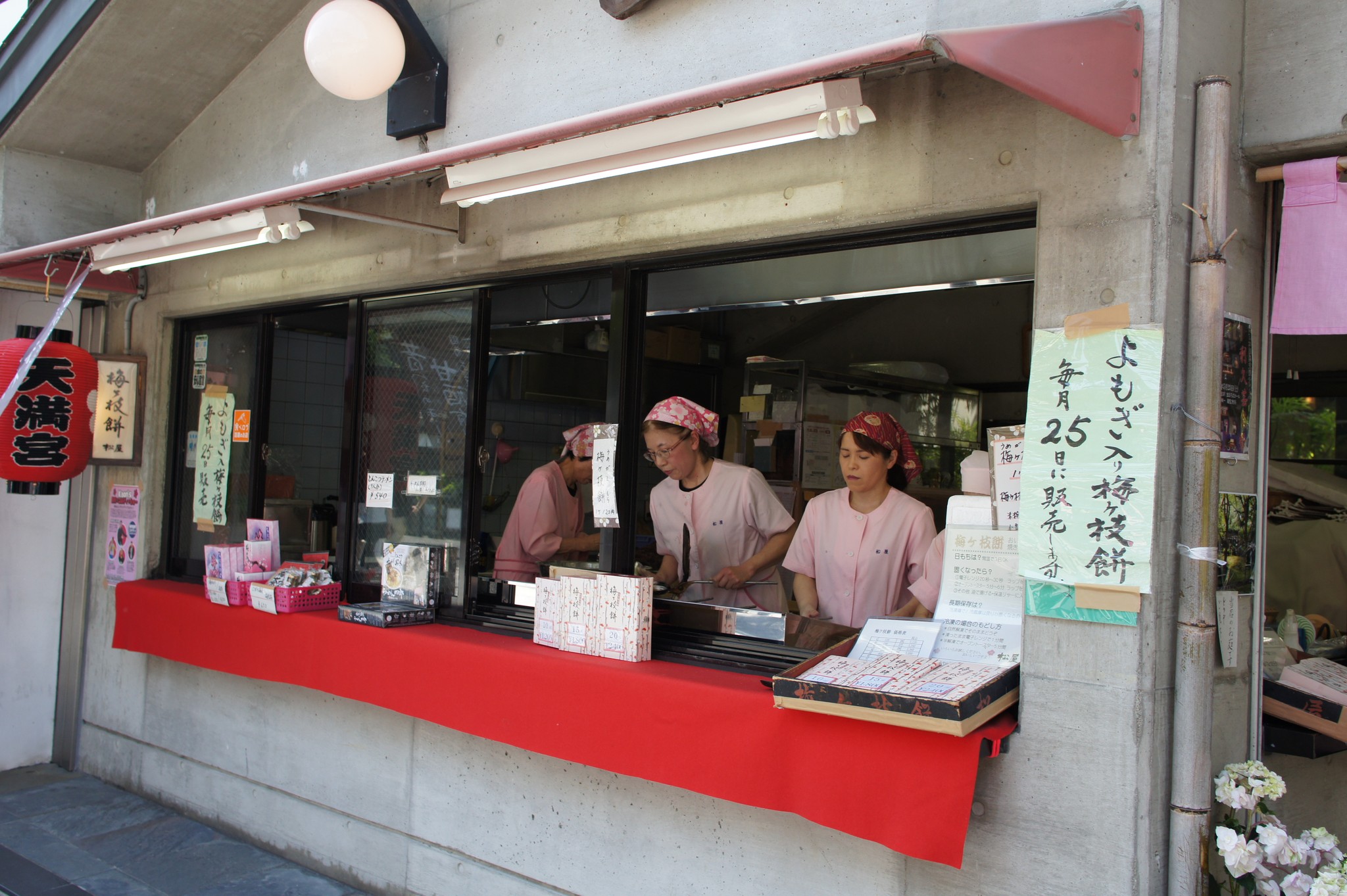 天滿宮前的表參道上有許多賣太宰府名物"梅ヶ枝餅"的店家