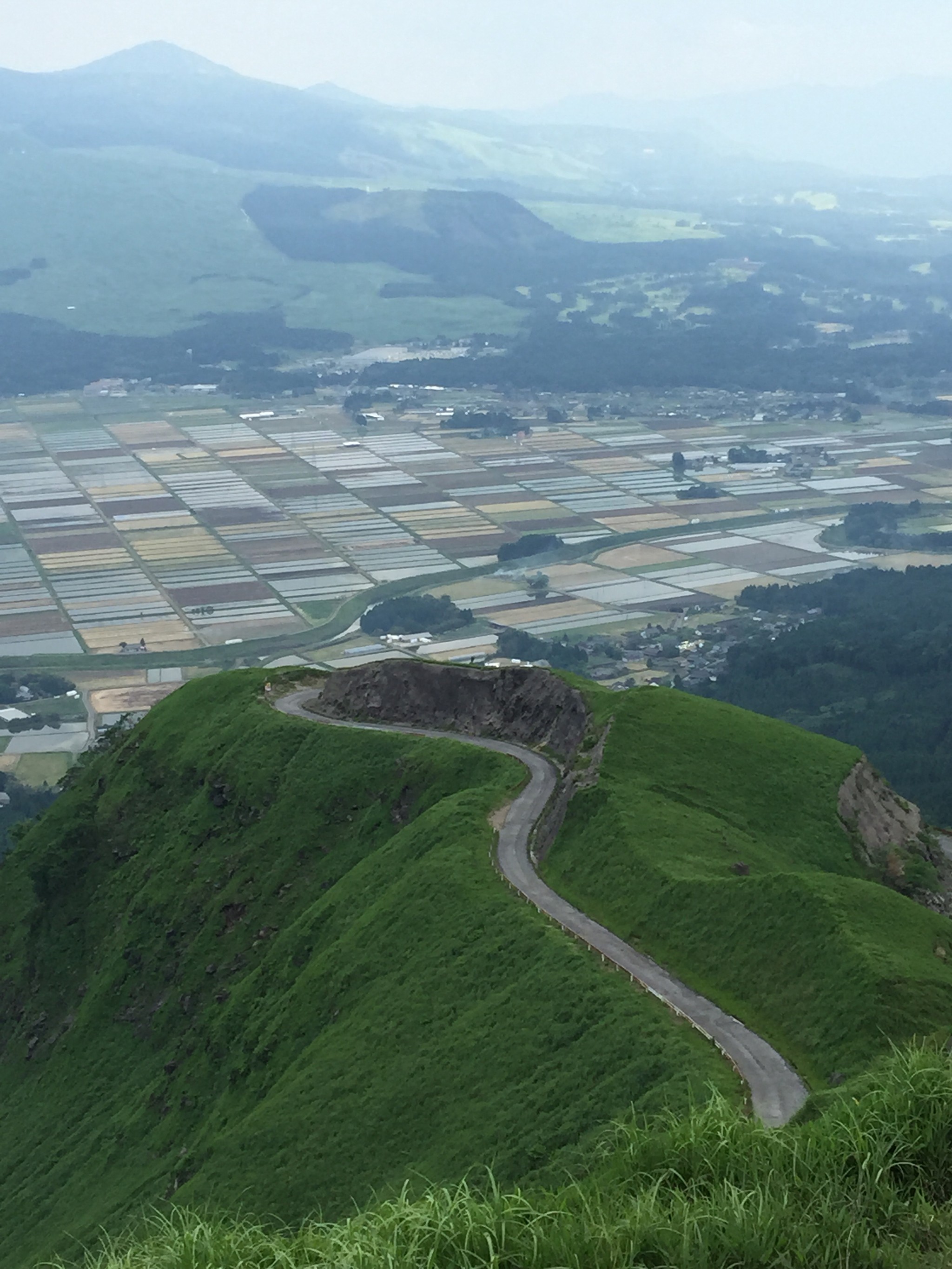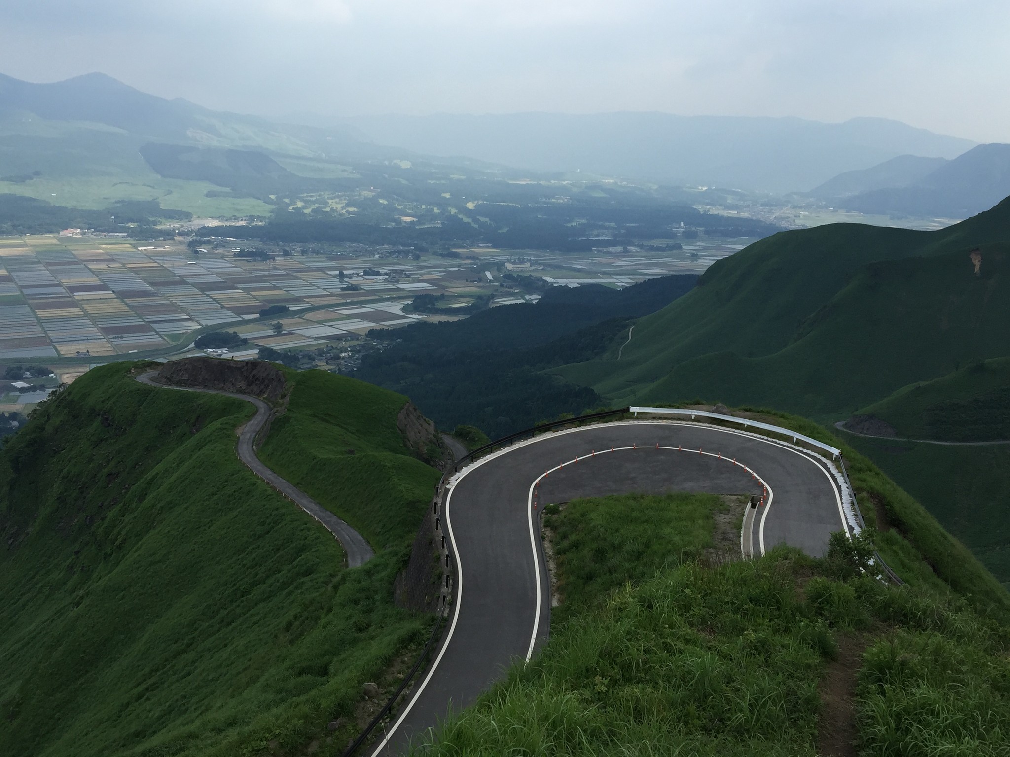 天空之道(ラピュタの道)位於大家熟悉的阿蘇火山的西北側,熊本県阿蘇市的外輪山,應該是沒有大眾運輸工具可到達,自駕應該是最佳的選項。這條路狹窄急彎再加上落石不斷,下雨或是大雨過後或是有落石道路將會封閉。我們去的這天雖然無風無雨,整條路還是封閉的。