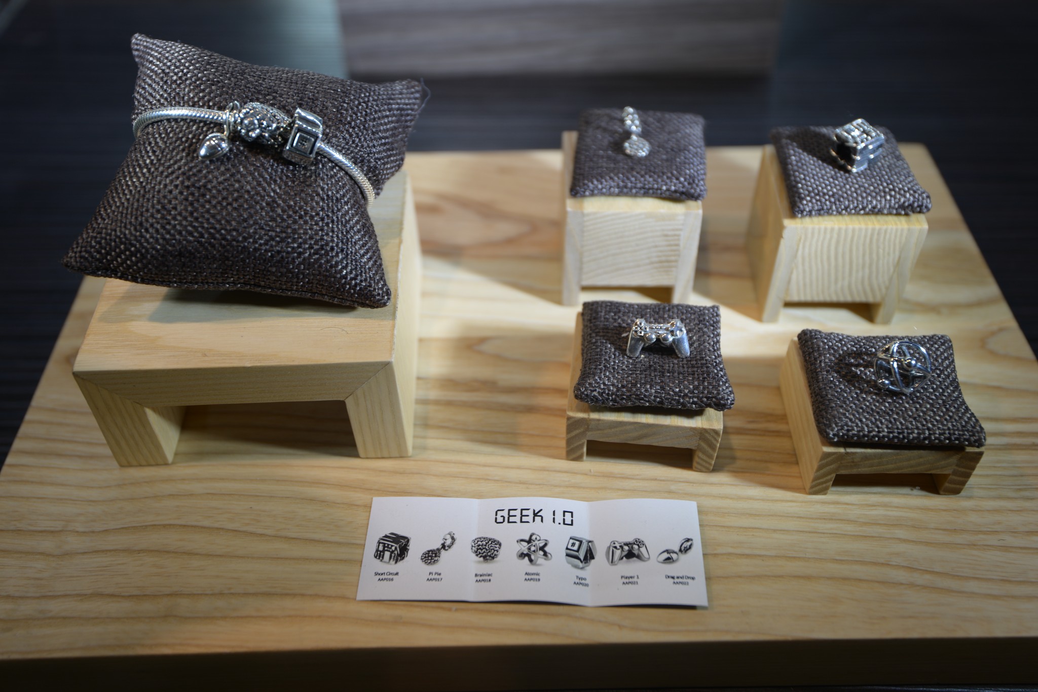 GEEK系列很適合男生戴,charm較偏向於理工科方面,像是有積體電路的立體方塊,原子模型,電玩遙控器