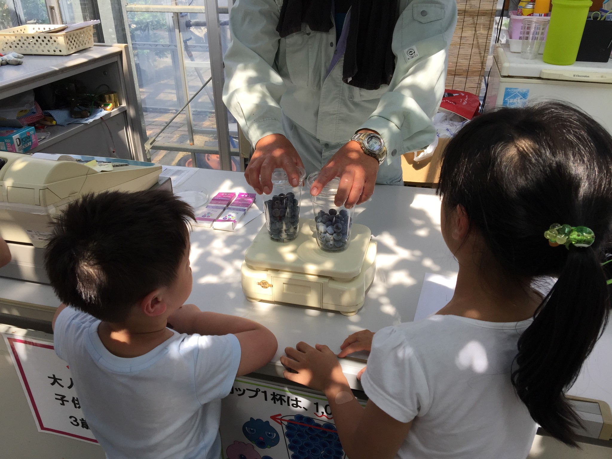 2015 九州。山陽 九州 元氣妞 6Y~7Y 日本旅遊 生活 無敵兔3Y~4Y 貓大王喵喵喵 [2015 九州。山陽] 吃過現採的藍莓嗎? 一起到秋吉ファームガーデン 採果去! 星期六, 7月 25, 2015 秋吉ファームガーデン就在JR於福車站旁邊,若是開車前往可以以車站來定位 營業時間為早上10:00到下午4:00 每回到日本都很喜歡買日本當地產的水果,又甜又好吃,春夏交替之際,草莓接近尾聲,水蜜桃才剛開始,安排旅行景點的時候,恰好看到九州的久留米,是盛產水果的縣市,但由於路線規劃以及水果產季的關係,無法在久留米採果,但無論如何還是很想試試採果的樂趣,恰好看到秋吉ファームガーデン可以採藍莓耶!在台灣,不論是在大賣場或是costco買的藍莓,都是冷凍運來台灣的,沒有吃過新鮮現採的,嘿嘿這一定要排進行程裡的啦! 這應該算是溫室搭棚的吧 原來藍莓是這樣種在盆栽裡的喲,旁邊的告示還寫著採這樣一杯的話大概就是1000日圓 要採可以吃的果實要看蒂頭已經都是深色的 我們去的時節剛好藍莓才剛開始可以採果,所以有些還沒有完全成熟 六月份的大太陽不是蓋的,才採沒多久大家都已經滿身汗了 這樣兩杯的價錢大概是日幣快800,以現採的價位來講應該蠻划算的 秋吉ファームガーデン旁的小賣店 賣一些藍莓的加工食品還有其他鄰近縣市的土產 如果不想自行採果,也有賣整盒銷售的喲(店裡賣的比我們剛剛自己亂採的都還要黑耶,有點擔心我們採的會不會酸 @@) 藍莓塔,藍莓在甜點上的應用真的是很多很多 在藍莓園的旁邊也有附設的餐廳,只是我們到的時間已經超過午餐供應時間了,而且還有下一個行程呢~ 除了藍莓製品之外,還有其他店家自製的麵包 炙熱的大太陽,買了期間限定的藍莓冰品消暑用,好吃喲